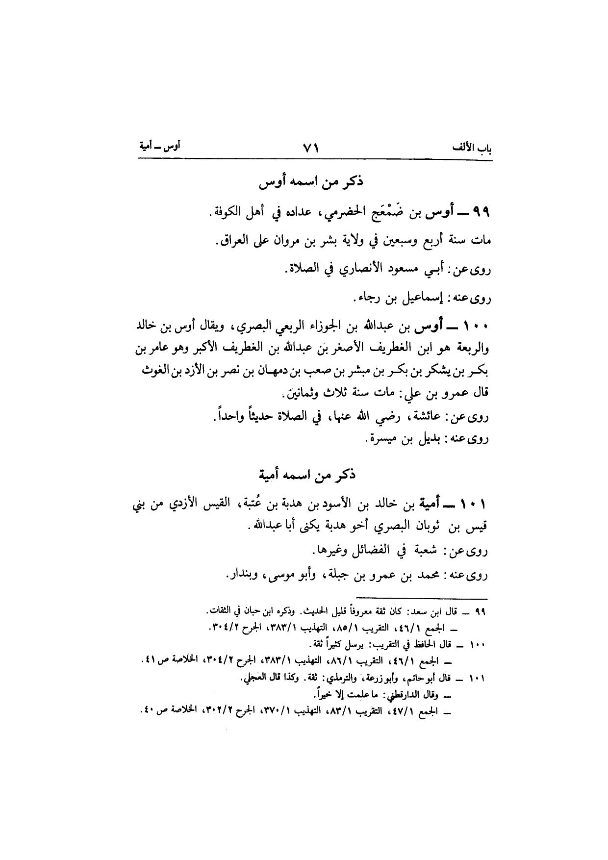 101 - أُميَّة بن خَالِد بن الْأسود بن هدبة بن عتبَة الْقَيْس الْأَزْدِيّ من بني قيس بن ثَوْبَان الْبَصْرِيّ أَخُو هدبة يكنى أَبَا عبد الله