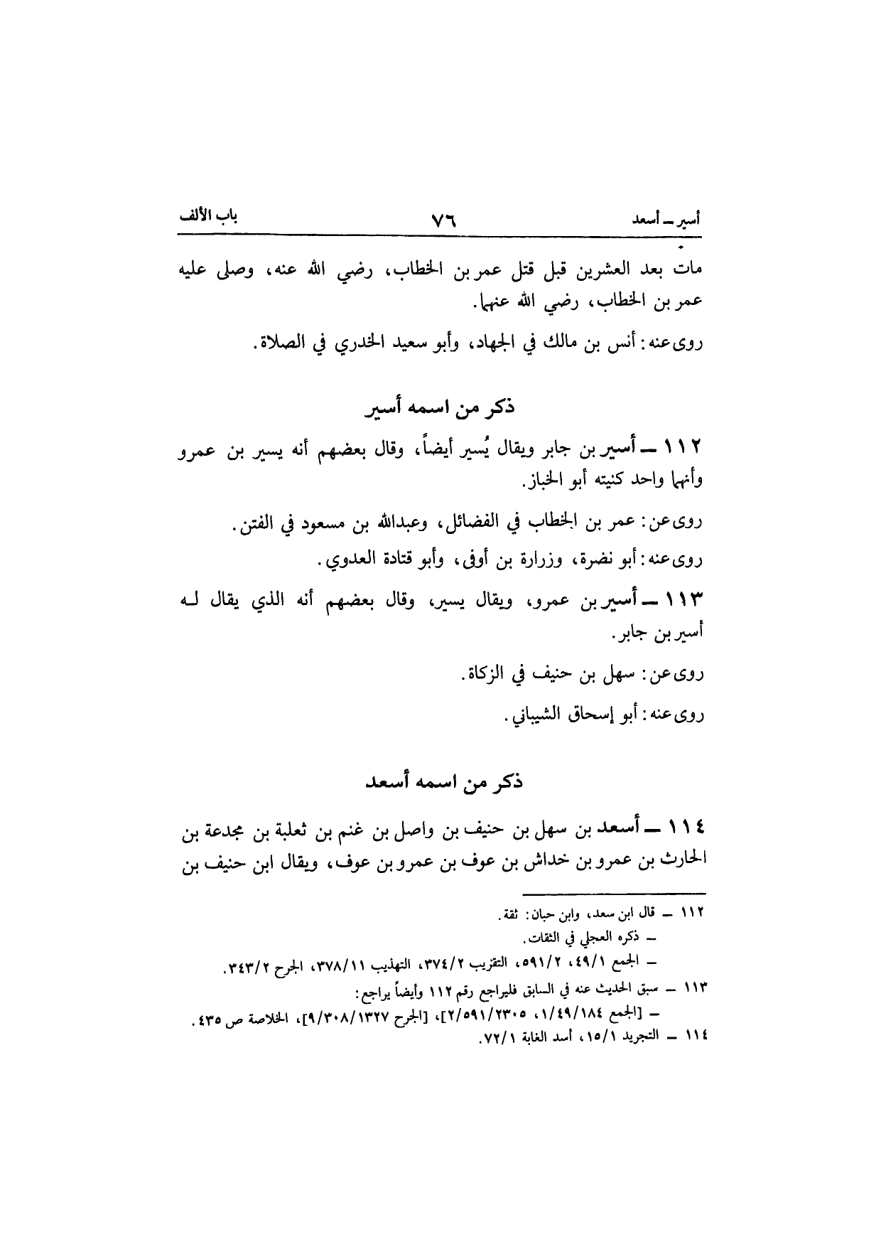 113 - أَسِير بن عَمْرو وَيُقَال يسير وَقَالَ بَعضهم أَنه الَّذِي يُقَال لَهُ أَسِير بن جَابر