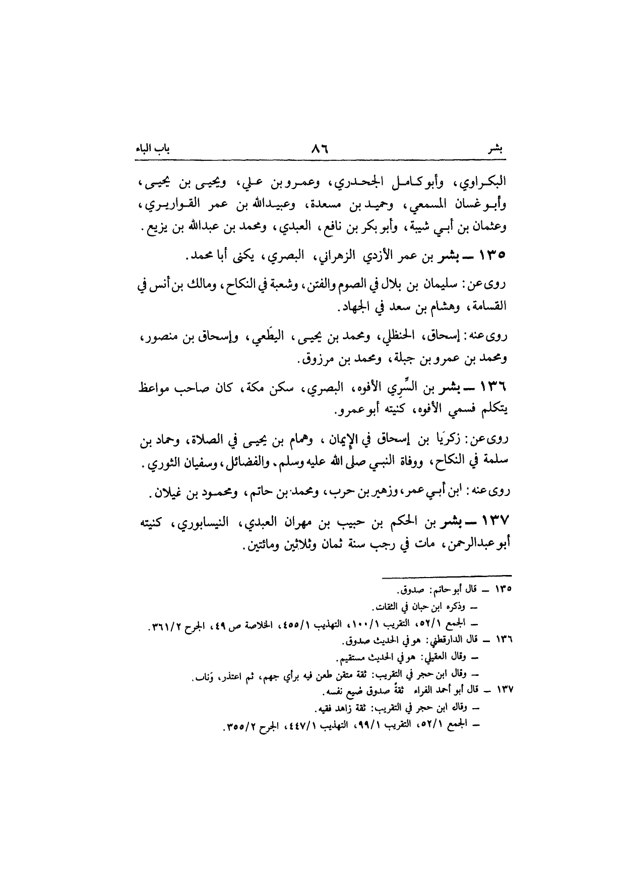 135 - بشر بن عمر الْأَزْدِيّ الزهْرَانِي الْبَصْرِيّ يكنى أَبَا مُحَمَّد
