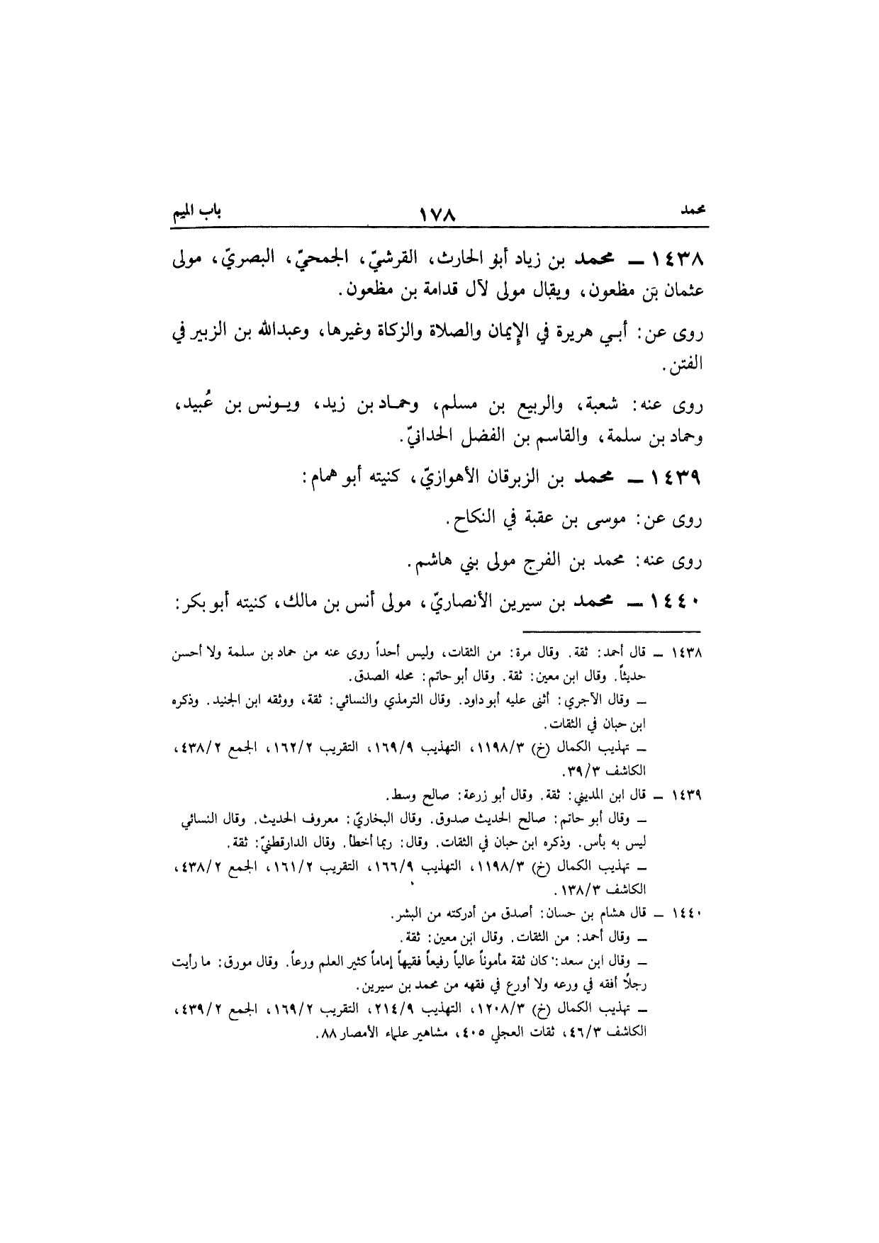 1440 - مُحَمَّد بن سِيرِين الْأنْصَارِيّ مولى أنس بن مَالك كنيته أَبُو بكر