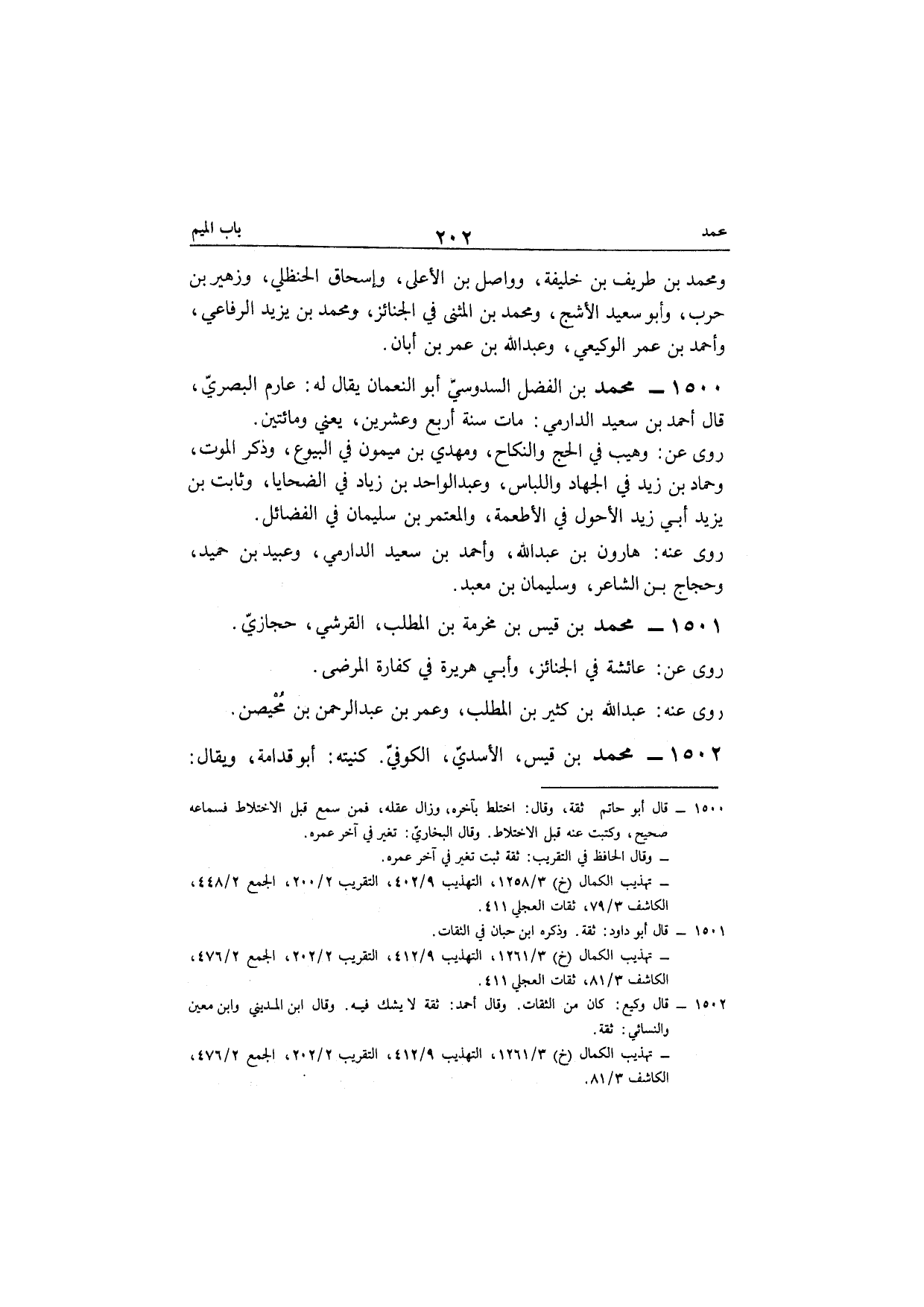 1502 - مُحَمَّد بن قيس الْأَسدي الْكُوفِي كنيته أَبُو قدامَة وَيُقَال أَبُو نصر من بني والبة من أنفسهم