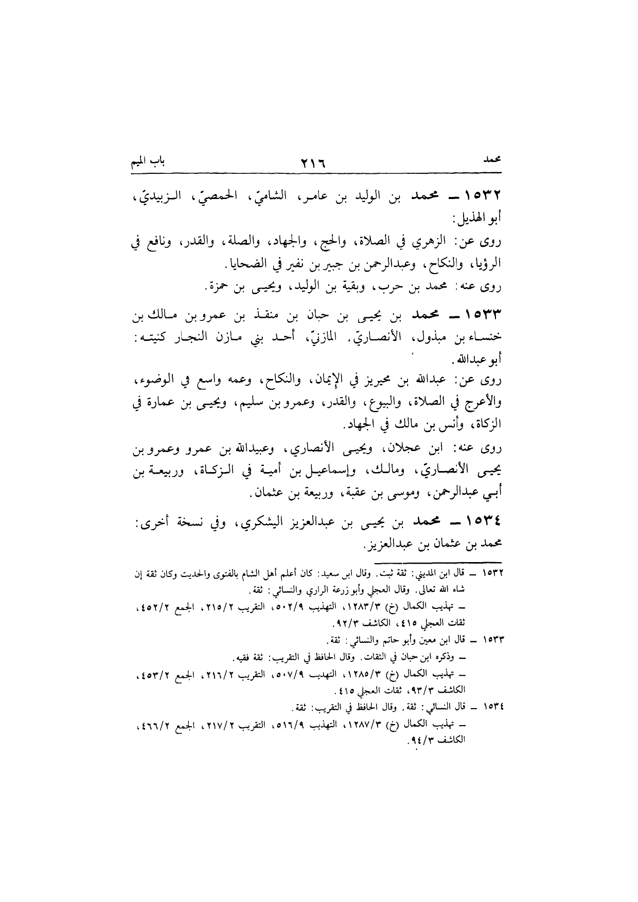 1532 - مُحَمَّد بن الْوَلِيد بن عَامر الشَّامي الْحِمصِي الزبيدِيّ أَبُو الْهُذيْل