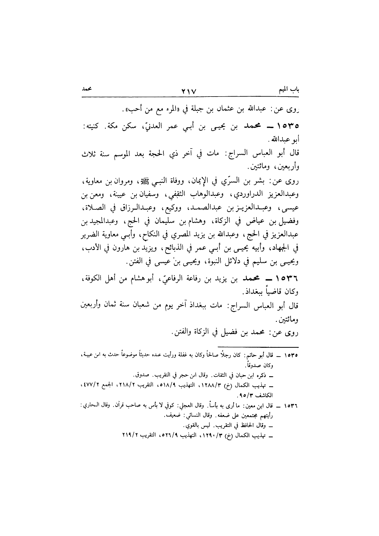 1536 - مُحَمَّد بن يزِيد بن رِفَاعَة الرِّفَاعِي أَبُو هِشَام من أهل الْكُوفَة وَكَانَ قَاضِيا ببغداذ