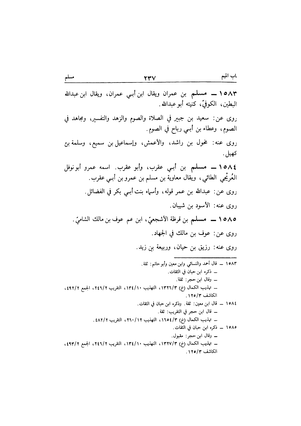 1583 - مُسلم بن عمرَان وَيُقَال ابْن ابي عمرَان وَيُقَال ابْن عبد الله البطين الْكُوفِي كنيته أَبُو عبد الله