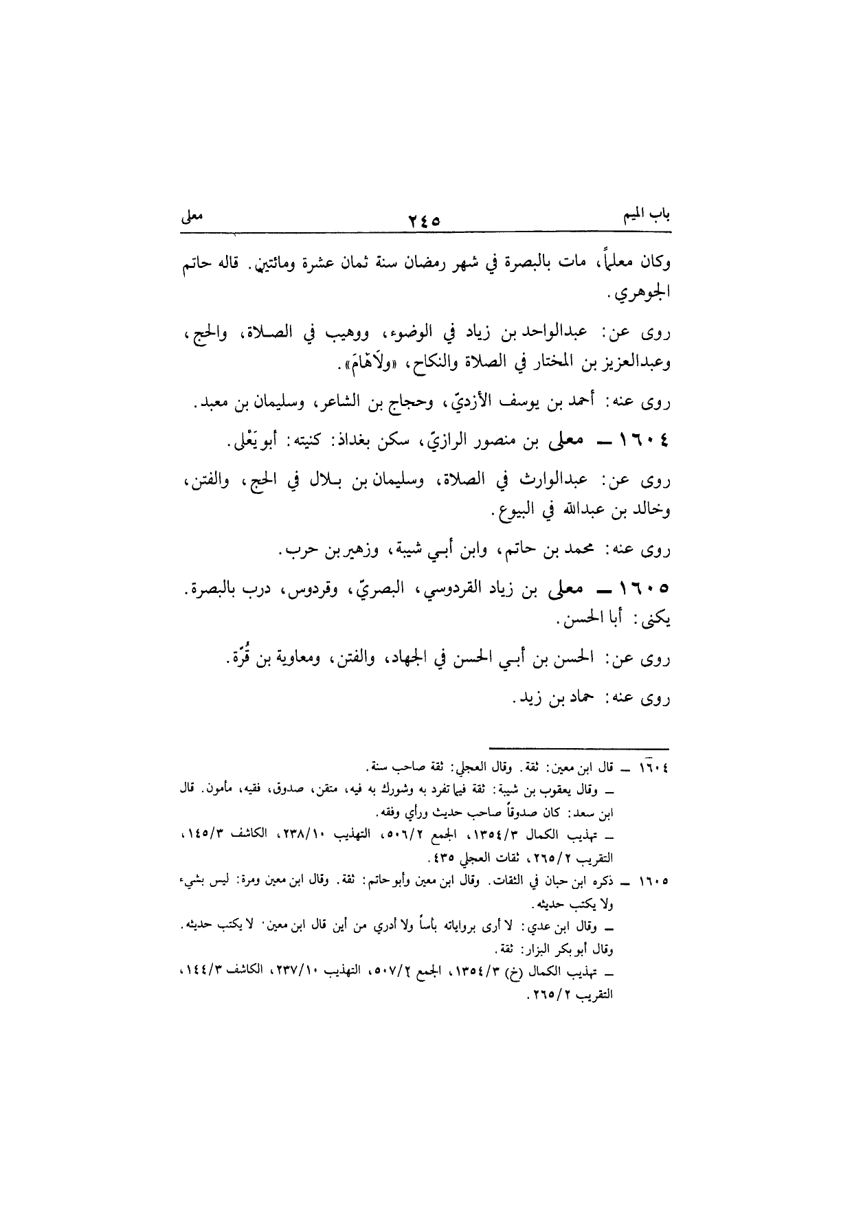 1605 - مُعلى بن زِيَاد القردوسي الْبَصْرِيّ وقردوس درب بِالْبَصْرَةِ يكنى أَبَا الْحسن