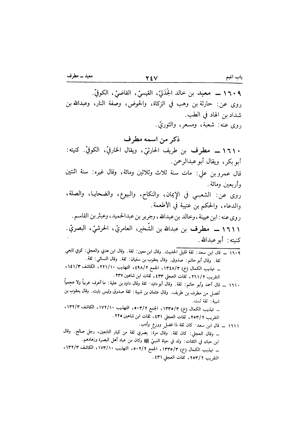 1611 - مطرف بن عبد الله بن الشخير العامري الْحَرَشِي الْبَصْرِيّ كنيته أَبُو عبد الله