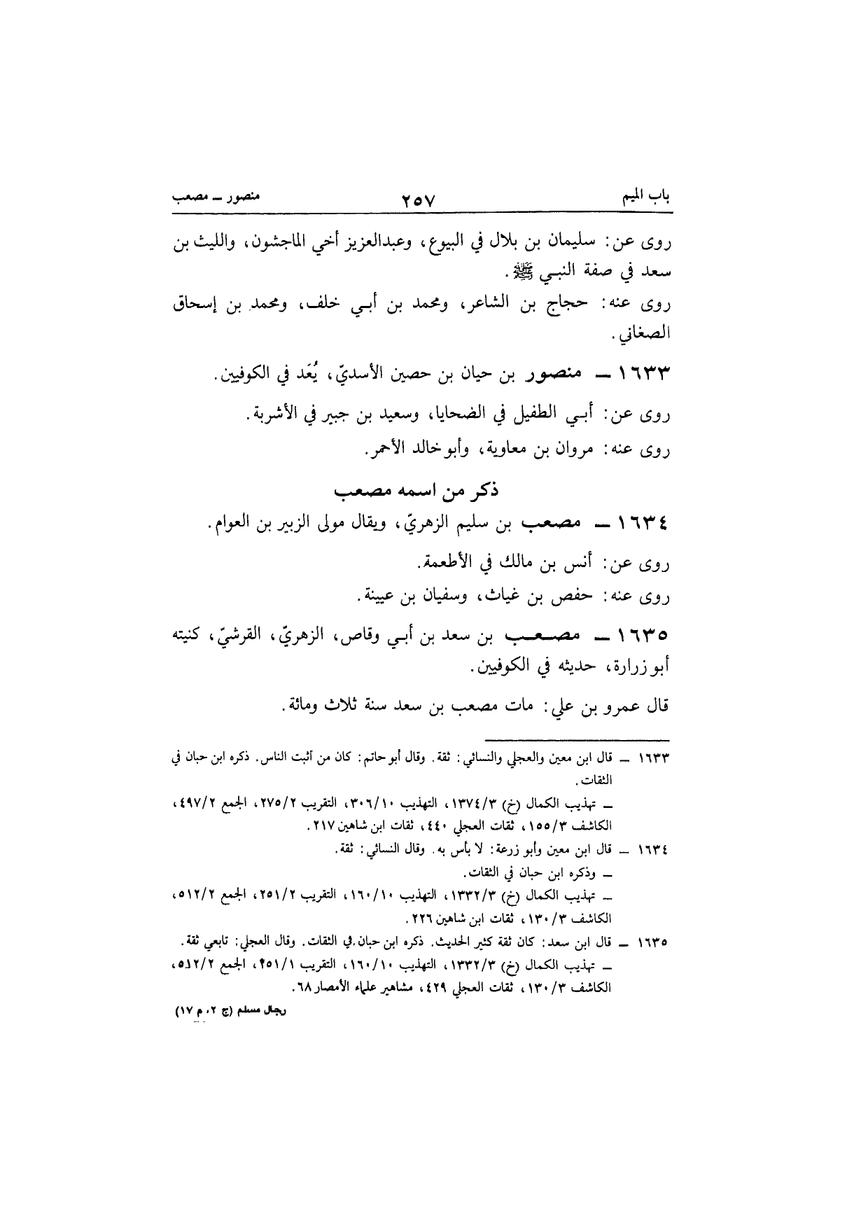 1635 - مُصعب بن سعد بن ابي وَقاص الزُّهْرِيّ الْقرشِي كنيته أَبُو زُرَارَة حَدِيثه فِي الْكُوفِيّين