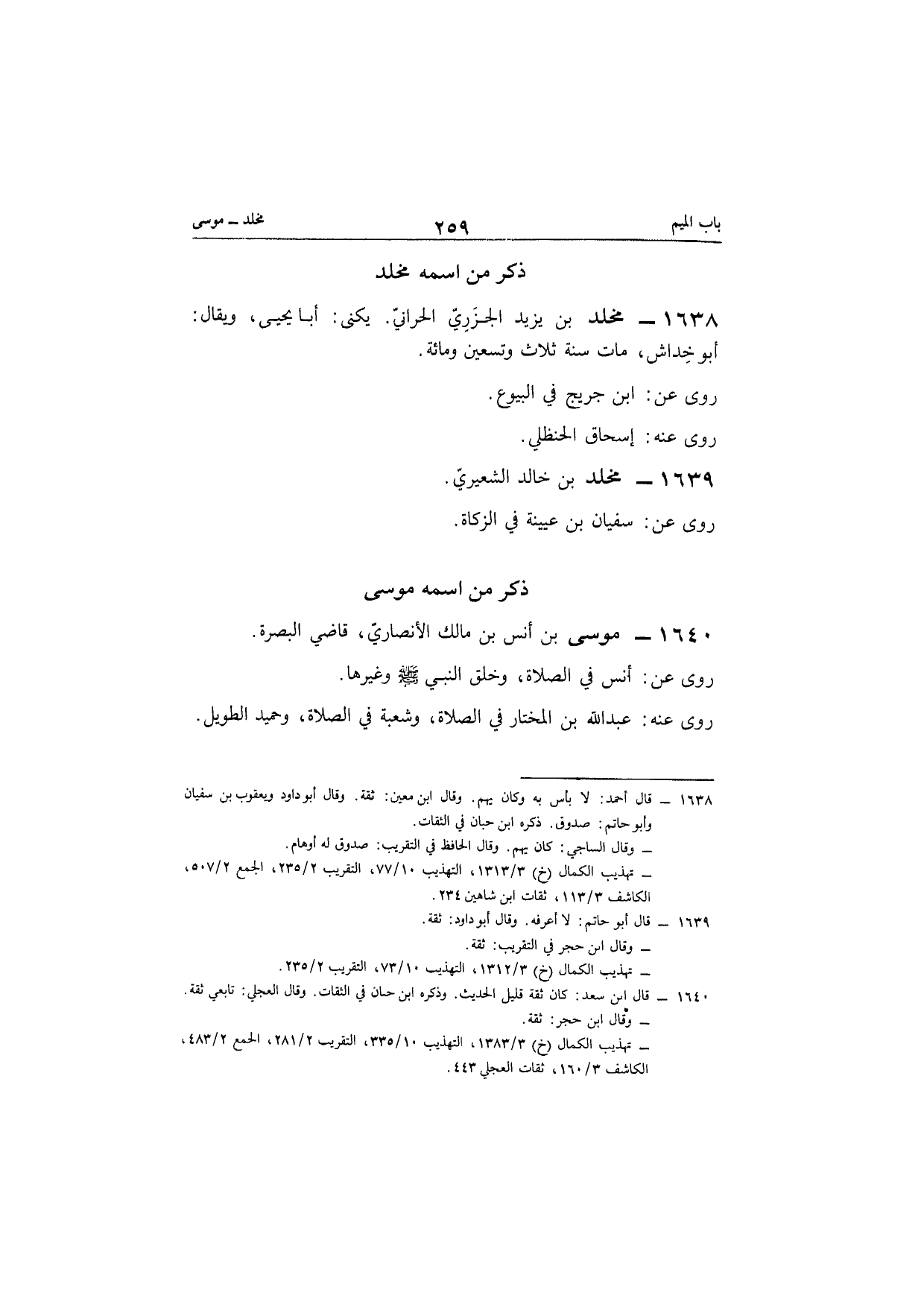 1638 - مخلد بن يزِيد الْجَزرِي الْحَرَّانِي يكنى أَبَا يحيى وَيُقَال أَبُو خِدَاش مَاتَ سنة ثَلَاث وَتِسْعين وَمِائَة