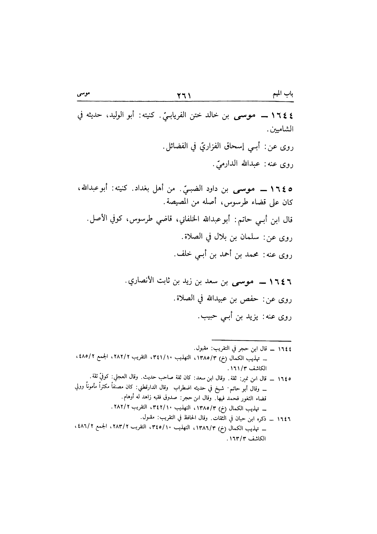 1644 - مُوسَى بن خَالِد ختن الْفرْيَابِيّ كنيته أَبُو الْوَلِيد حَدِيثه فِي الشاميين