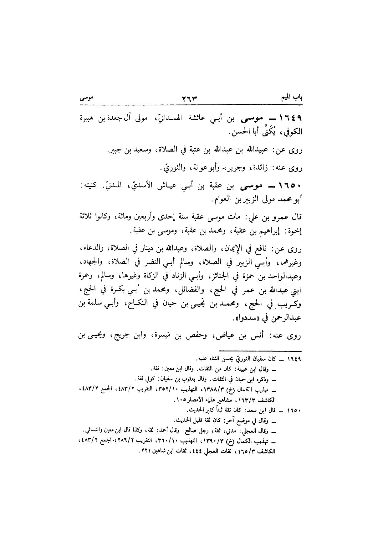 1650 - مُوسَى بن عقبَة بن أبي عَيَّاش الْأَسدي الْمدنِي كنيته أَبُو مُحَمَّد مولى الزبير بن الْعَوام