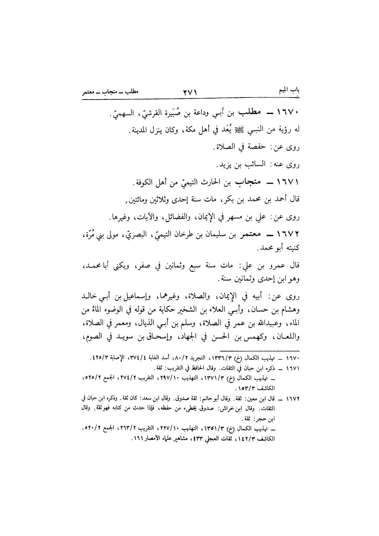 1671 - منْجَاب بن الْحَارِث التَّيْمِيّ من أهل الْكُوفَة