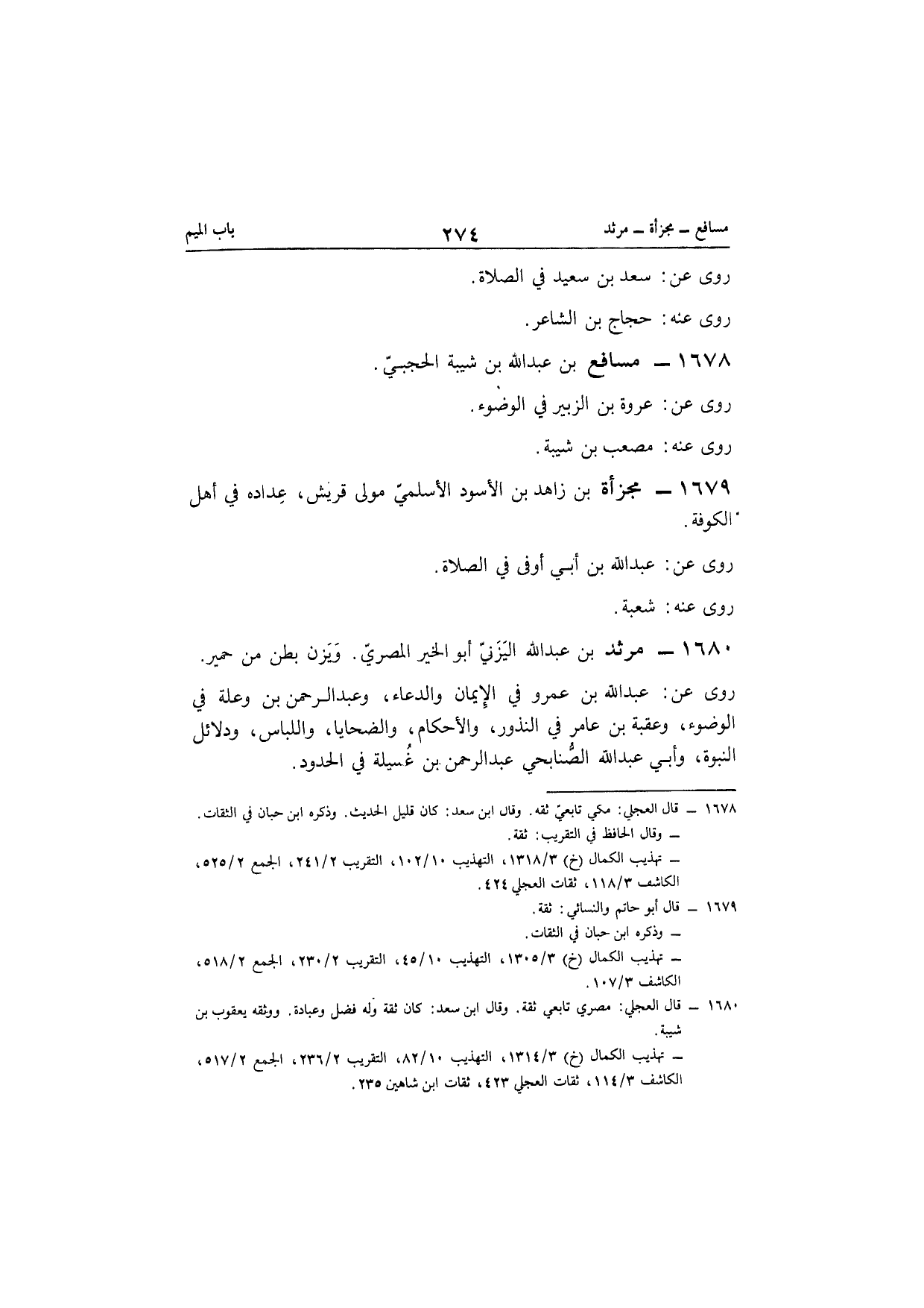 1679 - مجزأَة بن زاهد بن الْأسود الْأَسْلَمِيّ مولى قُرَيْش عداده فِي أهل الْكُوفَة