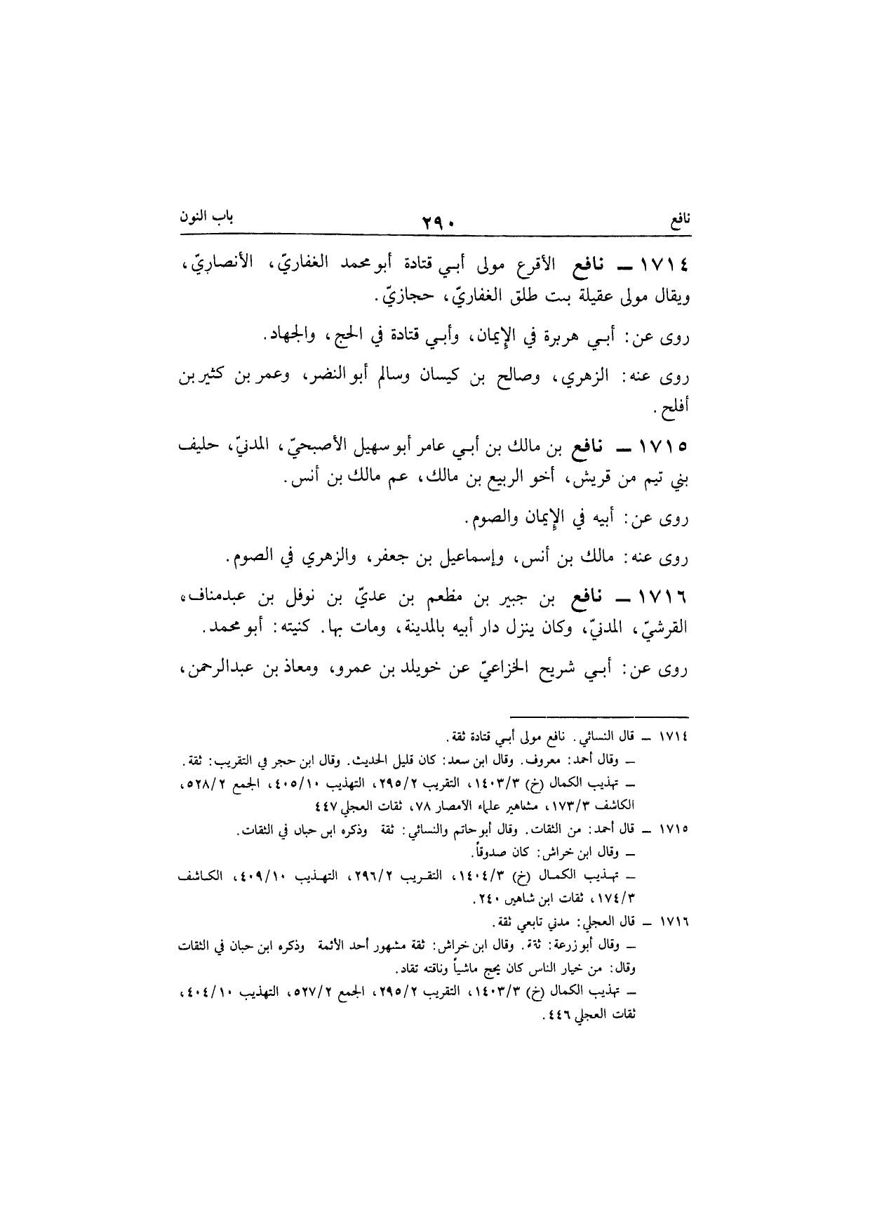 1715 - نَافِع بن مَالك بن أبي عَامر أَبُو سُهَيْل الأصبحي الْمدنِي حَلِيف بني تيم من قُرَيْش أَخُو الرّبيع بن مَالك عَم مَالك بن أنس