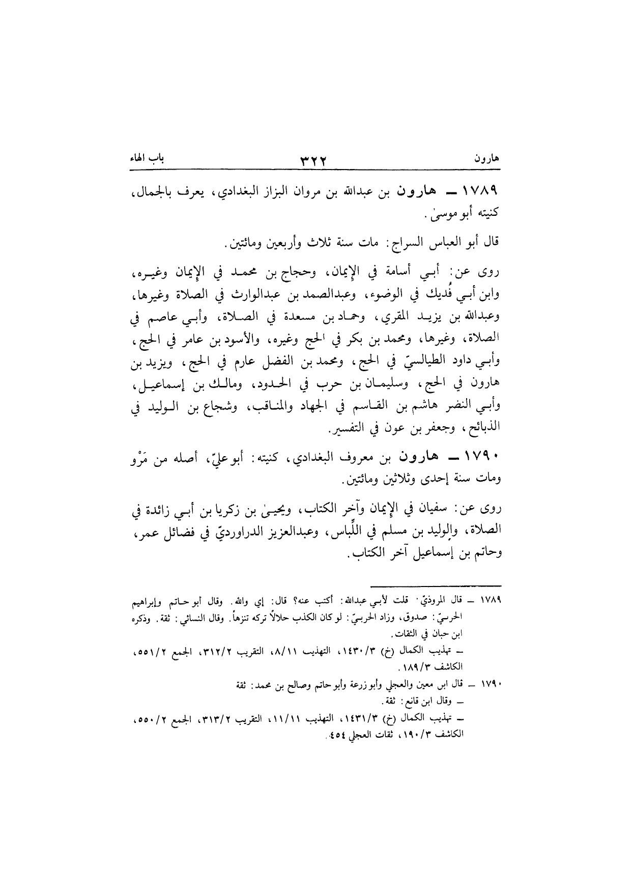 1790 - هَارُون بن مَعْرُوف الْبَغْدَادِيّ كنيته أَبُو عَليّ أَصله من مرو وَمَات سنة إِحْدَى وَثَلَاثِينَ وَمِائَتَيْنِ
