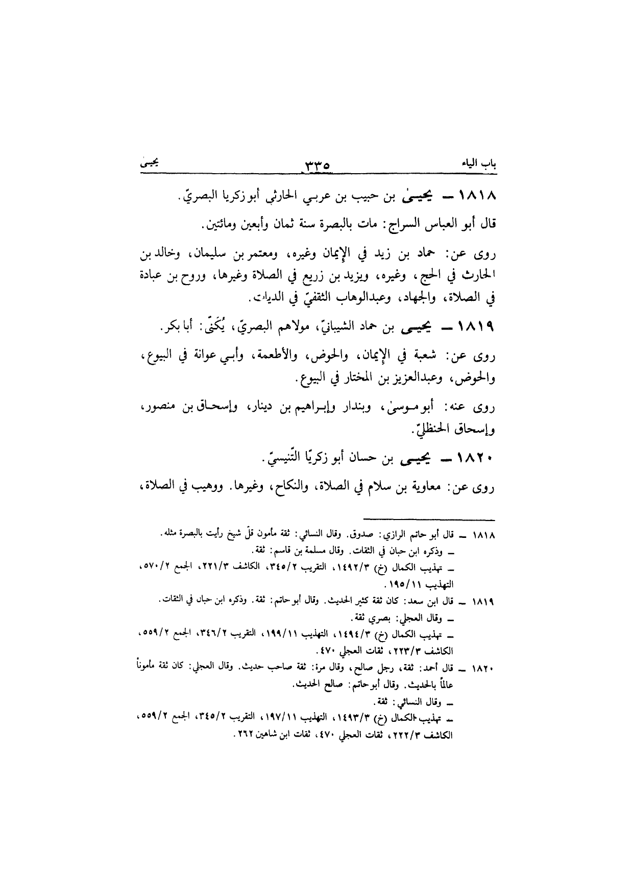 1818 - يحيى بن حبيب بن عَرَبِيّ الْحَارِثِيّ أَبُو زَكَرِيَّا الْبَصْرِيّ