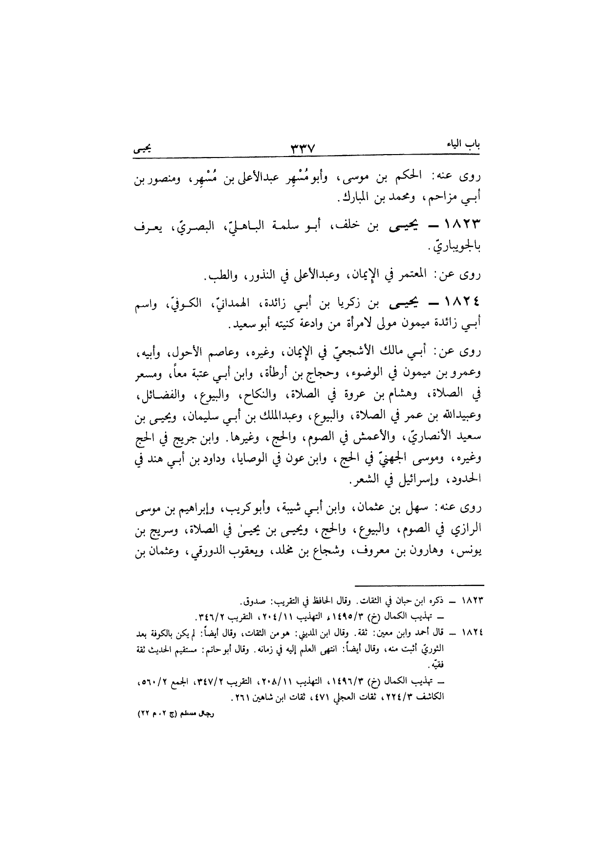 1824 - يحيى بن زَكَرِيَّا بن أبي زَائِدَة الْهَمدَانِي الْكُوفِي وَاسم أبي زَائِدَة مَيْمُون مولى لامْرَأَة من وَادعَة كنيته أَبُو سعيد