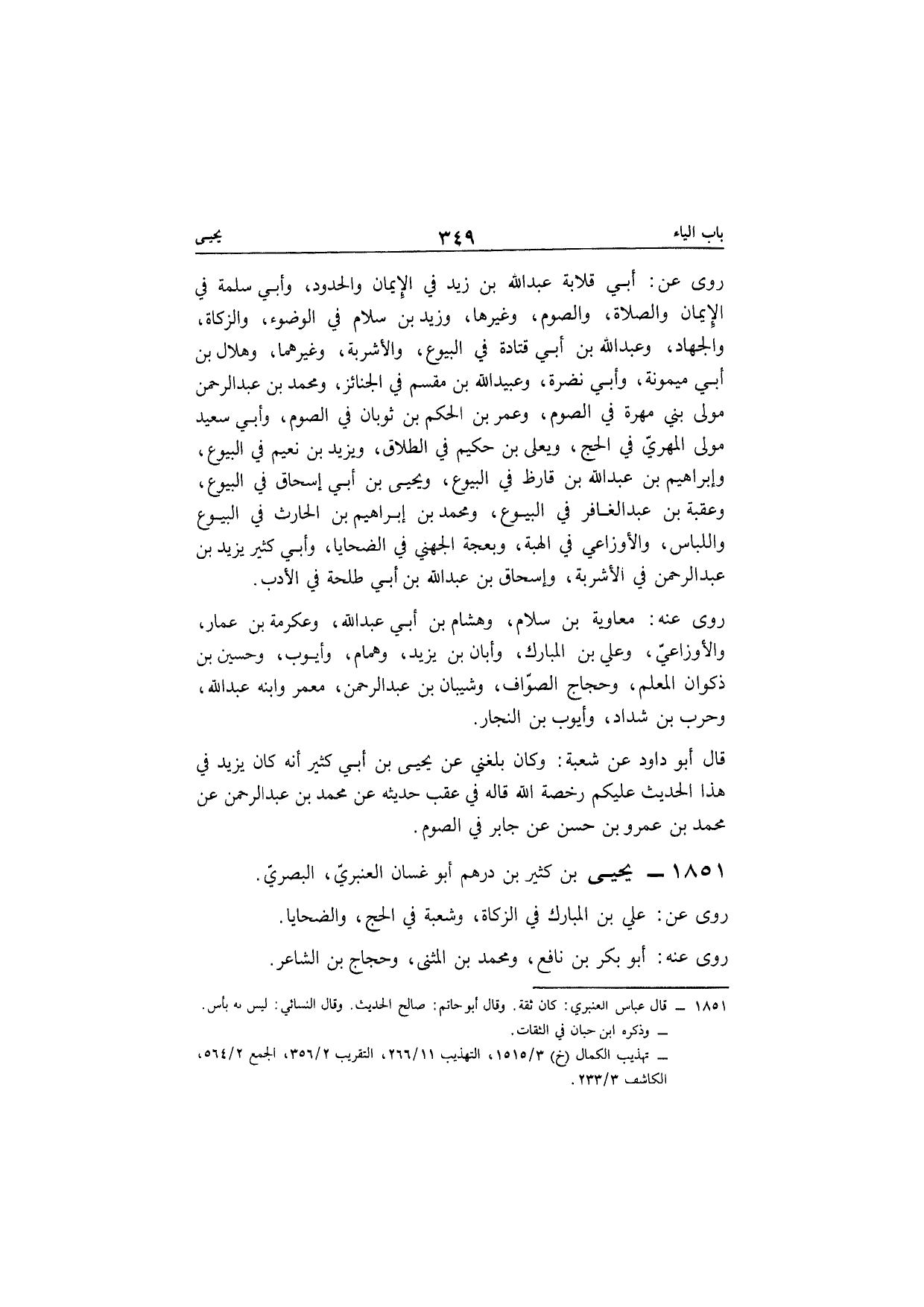 1851 - يحيى بن كثير بن دِرْهَم أَبُو غَسَّان الْعَنْبَري الْبَصْرِيّ