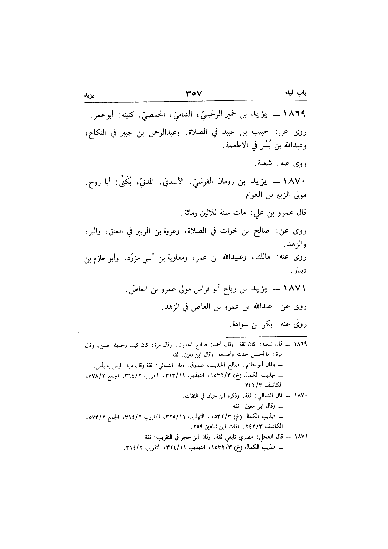 1871 - يزِيد بن رَبَاح أَبُو فراس مولى عَمْرو بن الْعَاصِ