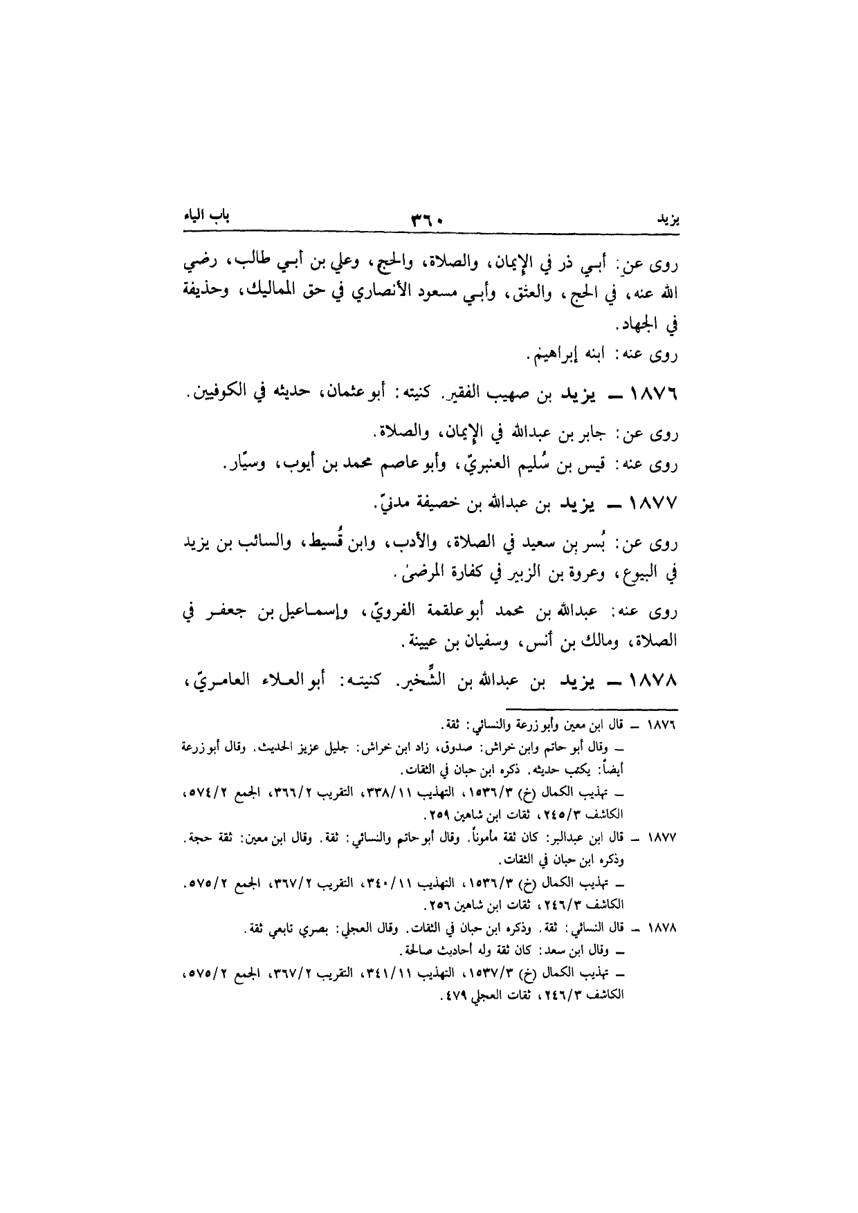 1876 - يزِيد بن صُهَيْب الْفَقِير كنيته أَبُو عُثْمَان حَدِيثه فِي الْكُوفِيّين
