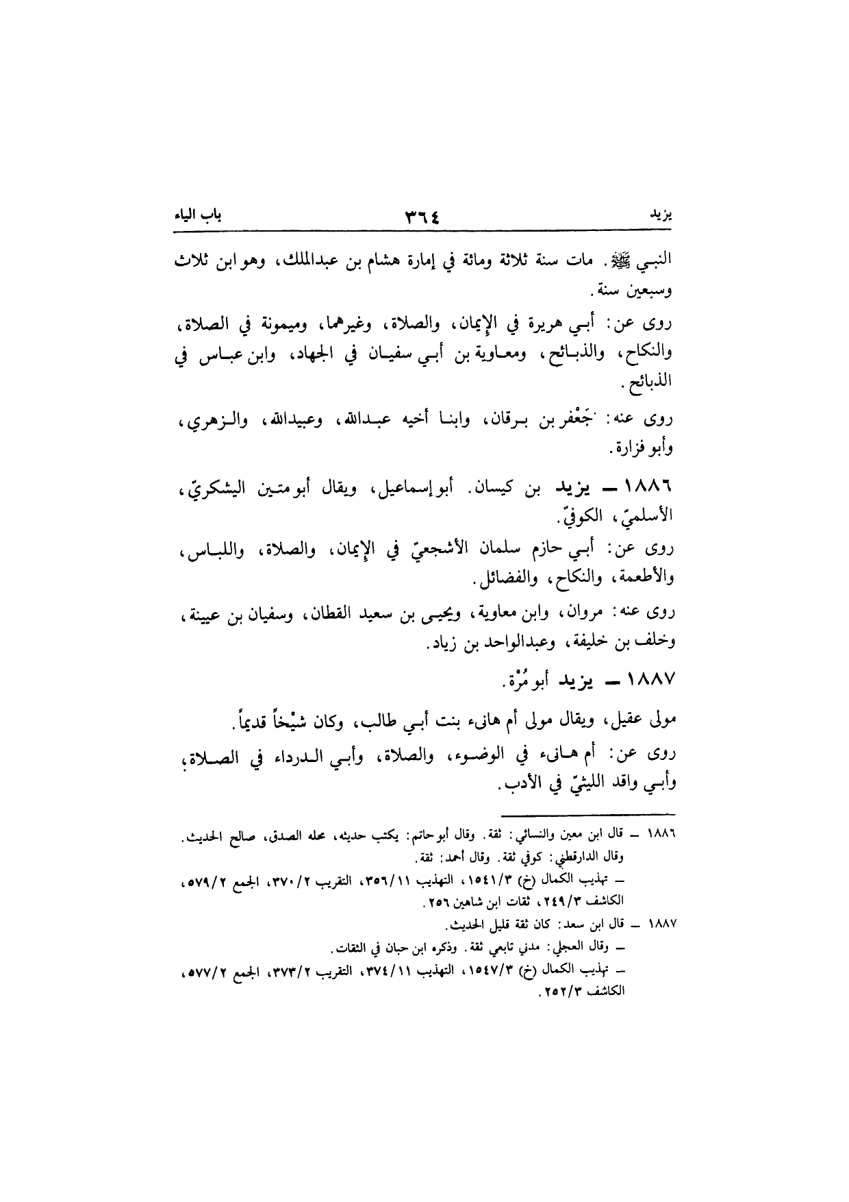 1886 - يزِيد بن كيسَان أَبُو إِسْمَاعِيل وَيُقَال أَبُو متين الْيَشْكُرِي الْأَسْلَمِيّ الْكُوفِي