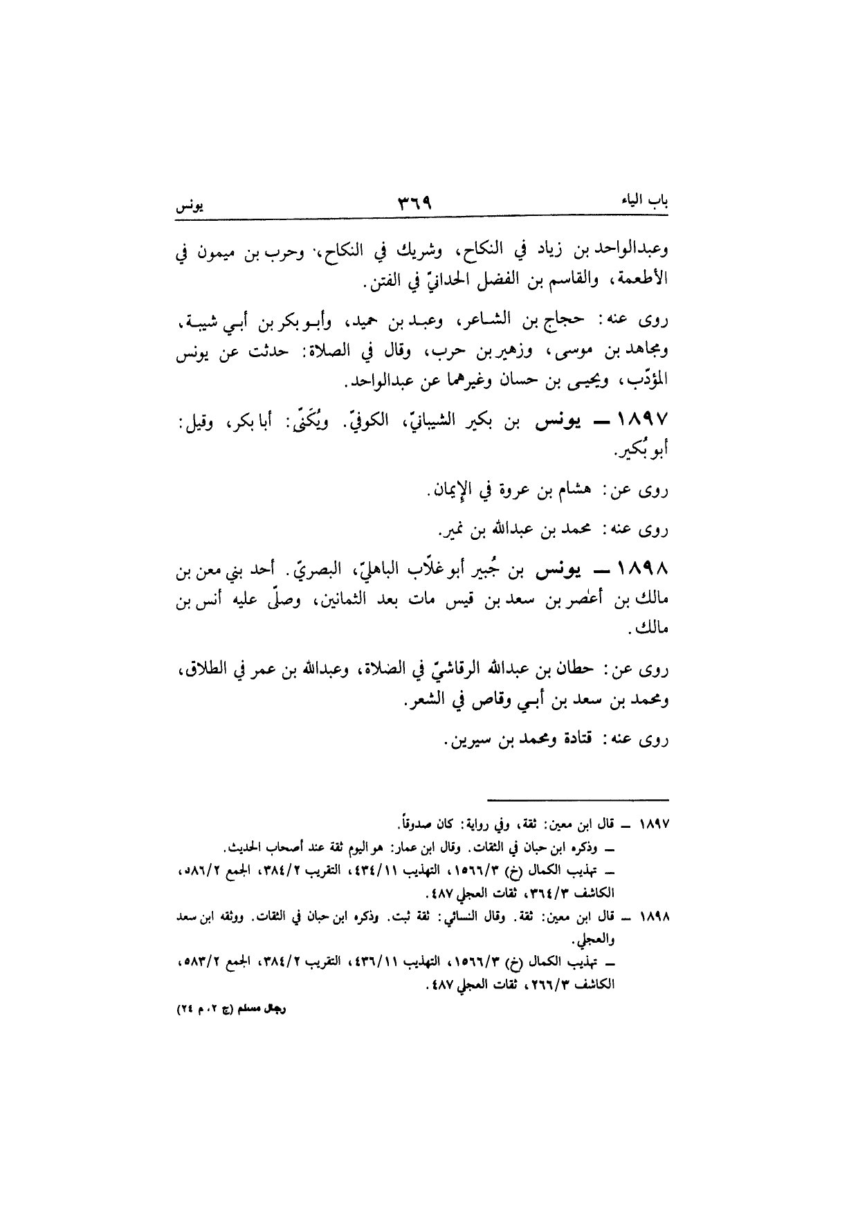 1897 - يُونُس بن بكير الشَّيْبَانِيّ الْكُوفِي ويكنى أَبَا بكر وَقيل أَبُو بكير