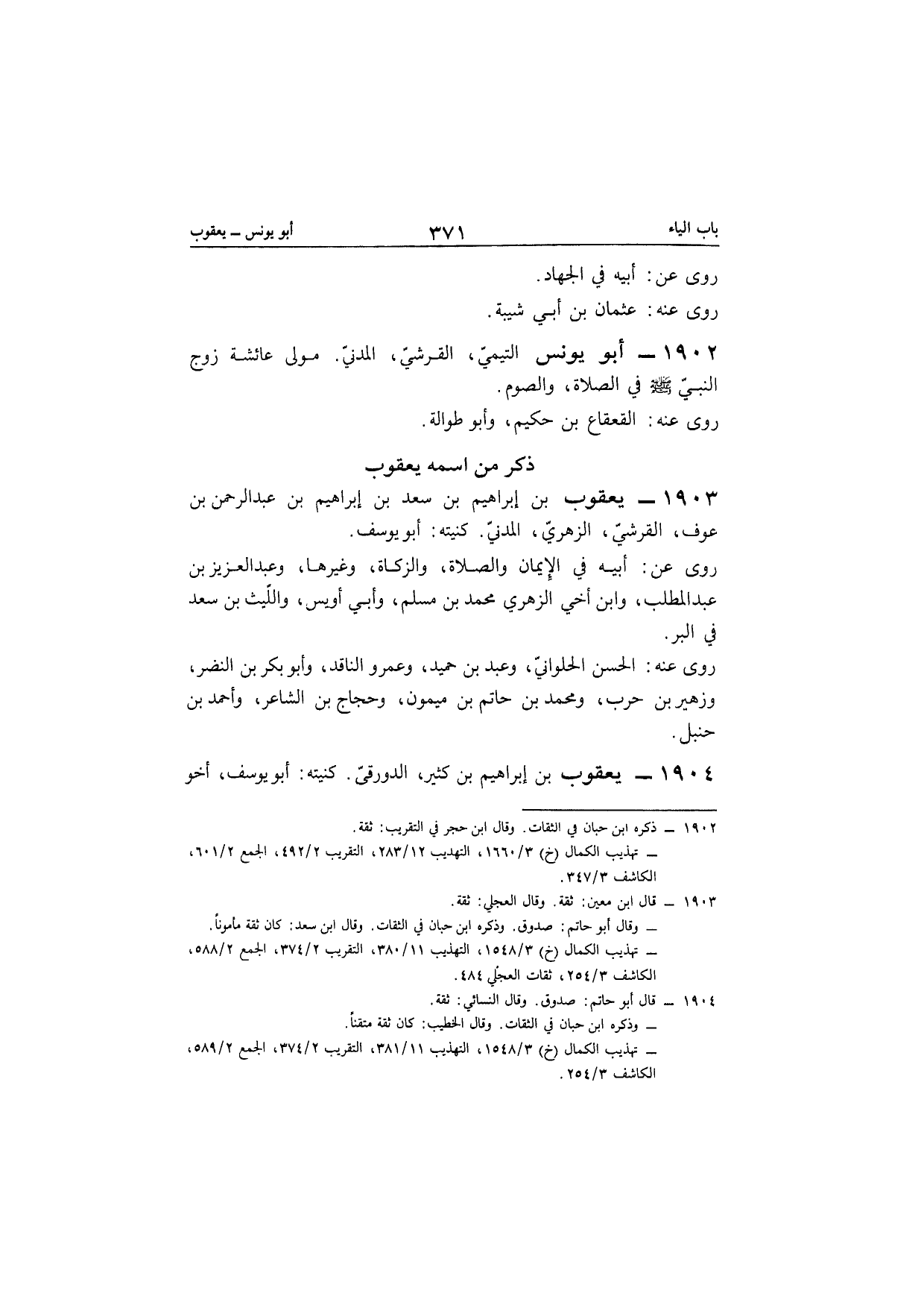 1903 - يَعْقُوب بن إِبْرَاهِيم بن سعد بن إِبْرَاهِيم بن عبد الرحمن بن عَوْف الْقرشِي الزُّهْرِيّ الْمدنِي كنيته أَبُو يُوسُف