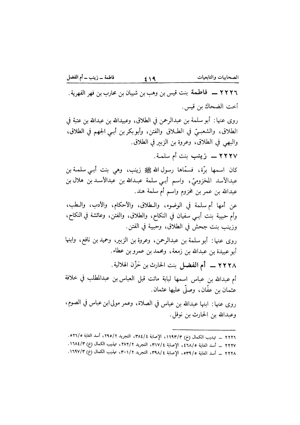 2226 - فَاطِمَة بنت قيس بن وهب بن شَيبَان بن محَارب بن فهر الفهرية أُخْت الضَّحَّاك بن قيس
