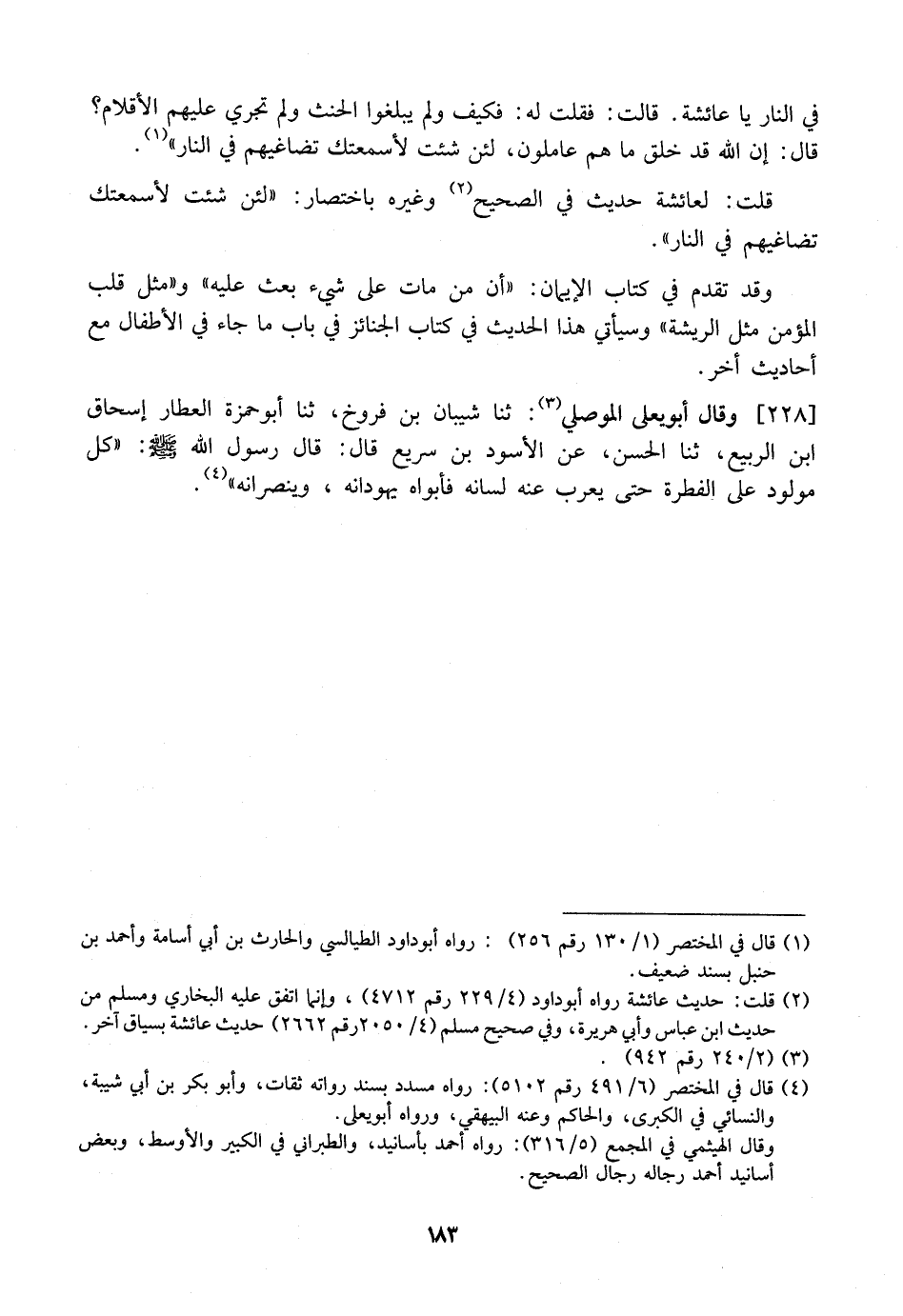 228 - وَقَالَ أَبُو يَعْلَى الْمَوْصِلِيُّ: ثنا شَيْبَانُ بْنُ فَرُّوخٍ، ثنا أَبُو حَمْزَةَ الْعَطَّارُ إسحاق ابن الربير، ثنا الْحَسَنُ، عَنِ الْأَسْوَدِ بْنِ سَرِيعٍ قَالَ: قَالَ رَسُولُ اللَّهِ - صَلَّى اللَّهُ عَلَيْهِ وسلم -: "كل مولود عَلَى الْفِطْرَةِ حَتَّى يُعْرِبَ عَنْهُ لِسَانُهُ فَأَبَوَاهُ يهودانه، وينصرانه ".
