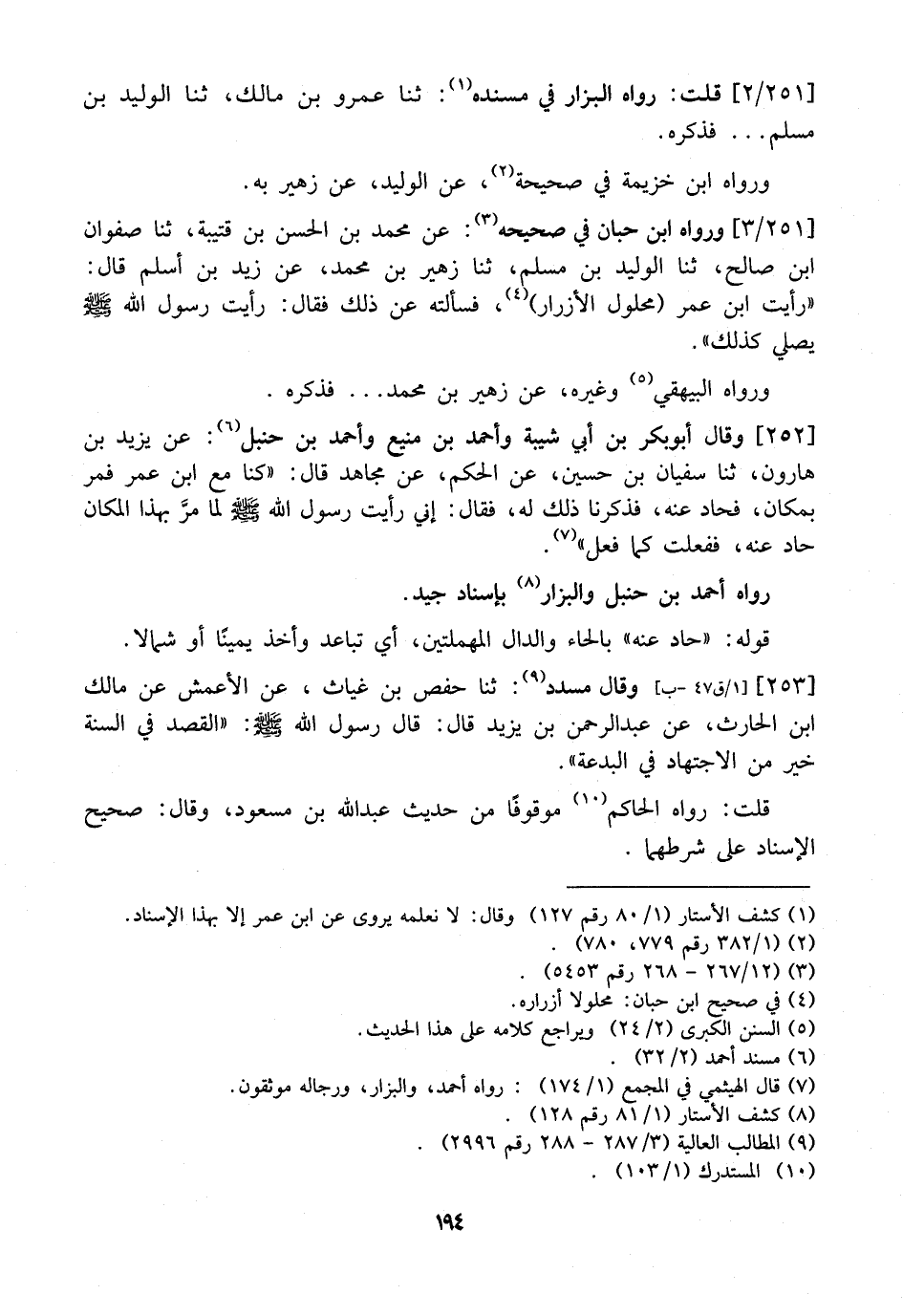 251 / 3 - وَرَوَاهُ ابْنُ حِبَّانَ فِي صَحِيحِهِ: عَنْ مُحَمَّدِ بْنِ الْحَسَنِ بْنِ قُتَيْبَةَ، ثنا صَفْوَانُ ابن صَالِحٍ، ثنا الْوَلِيدُ بْنُ مُسْلِمٍ، ثنا زُهَيْرُ بْنُ مُحَمَّدٍ، عَنْ زَيْدِ بْنِ أَسْلَمَ قَالَ: "رَأَيْتُ ابْنَ عُمَرَ (مَحْلُولَ الْأَزْرَارِ) ، فَسَأَلْتُهُ عَنْ ذَلِكَ فَقَالَ: رَأَيْتُ رَسُولَ اللَّهِ - صَلَّى اللَّهُ عَلَيْهِ وَسَلَّمَ - يصلي كذلك ".
