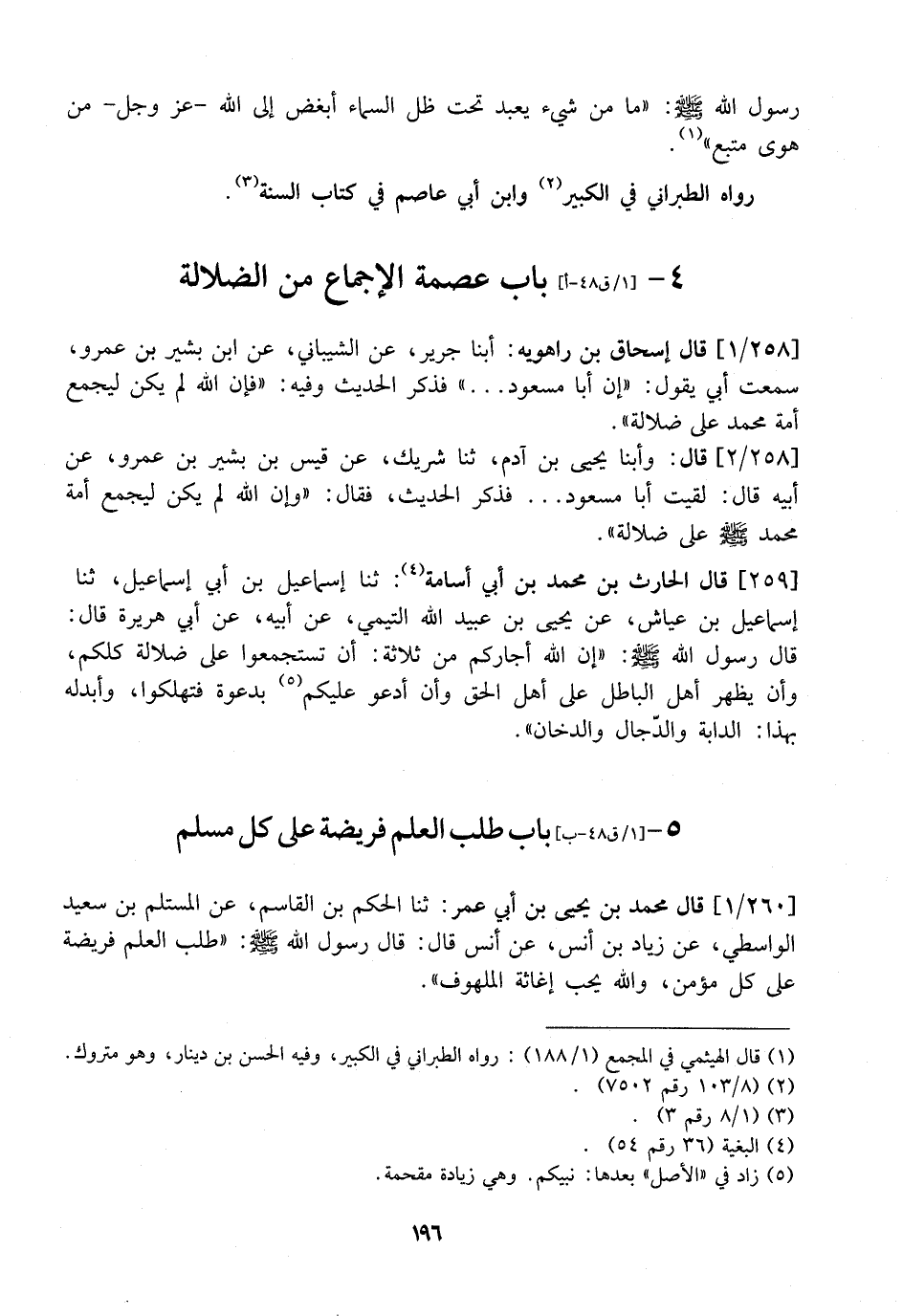 5- بَابُ طَلَبِ الْعِلْمِ فَرِيضَةٌ عَلَى كُلِّ مُسْلِمٍ