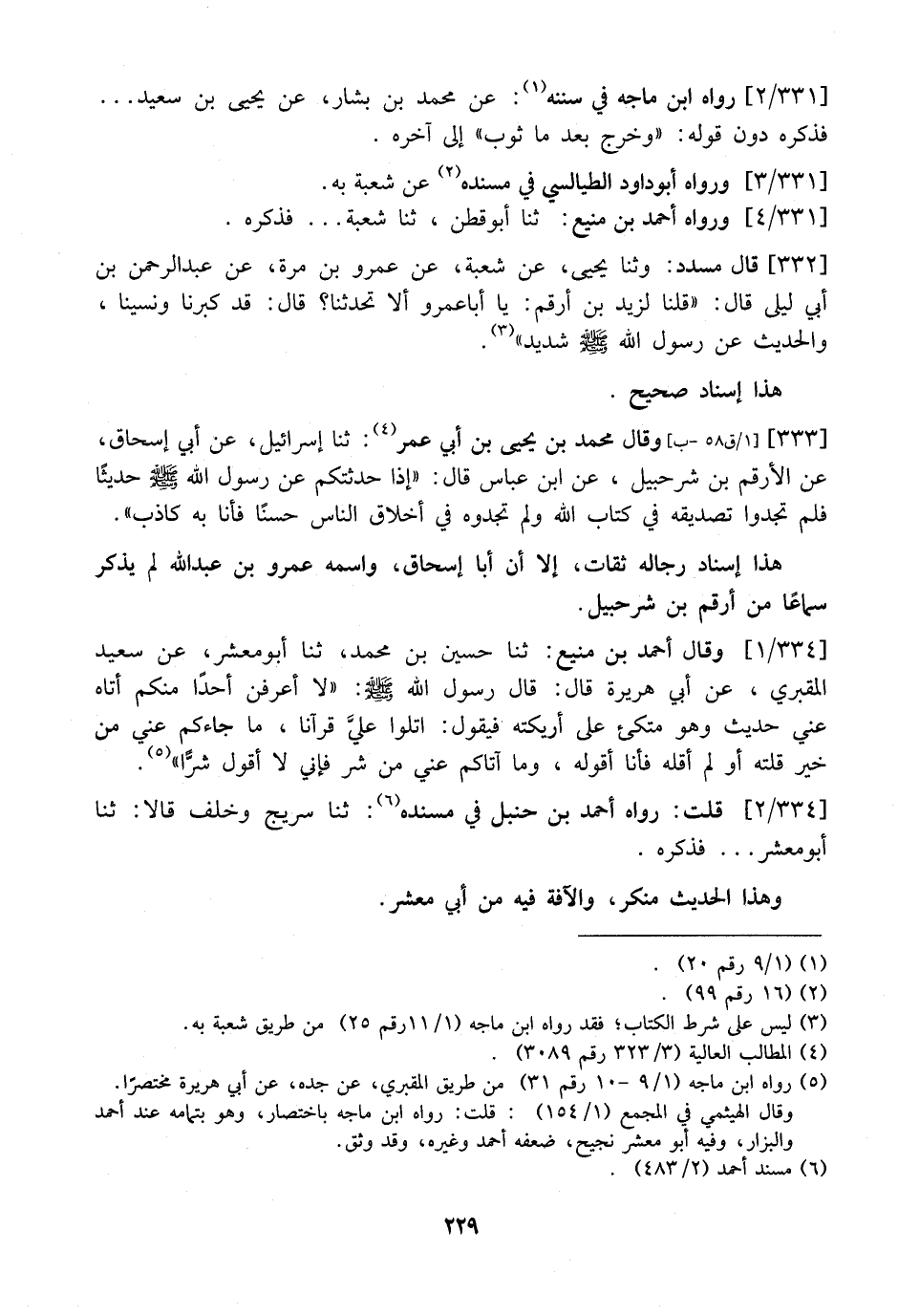 334 / 2 - قُلْتُ: رَوَاهُ أَحْمَدُ بْنُ حَنْبَلٍ فِي مُسْنَدِهِ: ثنا سريج وَخَلَفٌ قَالَا: ثنا أَبُو مَعْشَرٍ ... فَذَكَرَهُ.