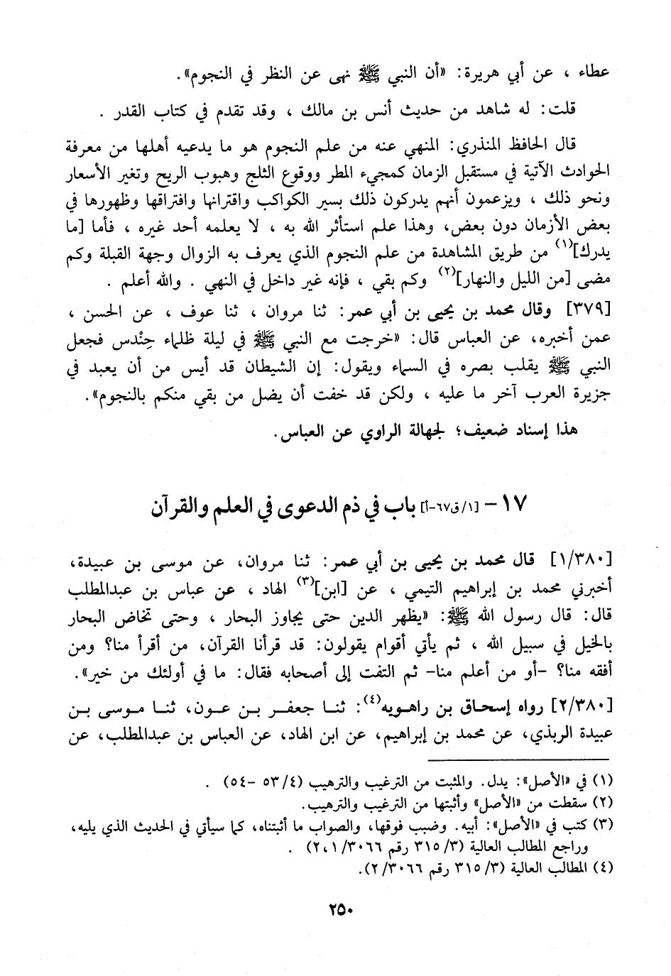 عَطَاءٍ، عَنْ أَبِي هُرَيْرَةَ: "أَنّ النَّبِيَّ - صَلَّى اللَّهُ عَلَيْهِ وَسَلَّمَ - نَهَى عَنِ النَّظَرِ فِي النُّجُومِ ".