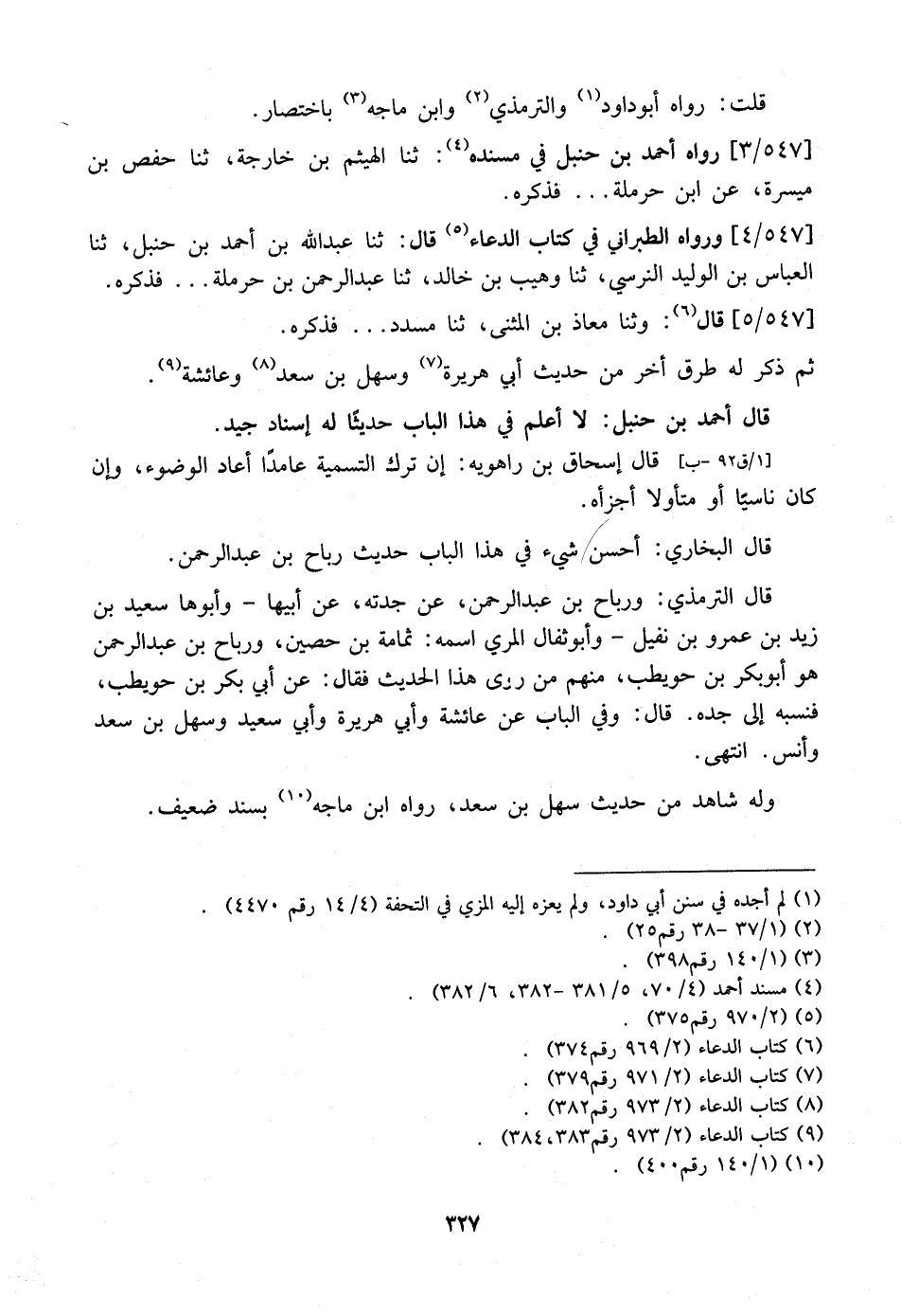قَالَ التِّرْمِذِيُّ: وَرَبَاحُ بْنُ عَبْدِ الرَّحْمَنِ، عَنْ جَدَّتِهِ، عَنْ أَبِيهَا- وَأَبُوهَا سَعِيدُ بْنُ زَيْدِ بْنِ عَمْرِو بْنِ نُفَيْلٍ- وَأَبُو ثَفَالٍ الْمُرِّيُّ اسْمُهُ: ثُمَامَةُ بْنُ حُصَيْنٍ، وَرَبَاحُ بْنُ عَبْدِ الرَّحْمَنِ هُوَ أَبُو بَكْرِ بْنُ حُوَيْطَبٍ، مِنْهُمْ مَنْ رَوَى هَذَا الْحَدِيثَ فَقَالَ: عَنْ أَبِي بَكْرِ بْنِ حُوَيْطِبٍ، فَنَسَبَهُ إِلَى جَدِّهِ. قَالَ: وَفِي الْبَابِ عَنْ عَائِشَةَ وَأَبِي هُرَيْرَةَ وَأَبِي سعيد وَسَهْلِ بْنِ سَعْدٍ وَأَنَسٍ انتهى.