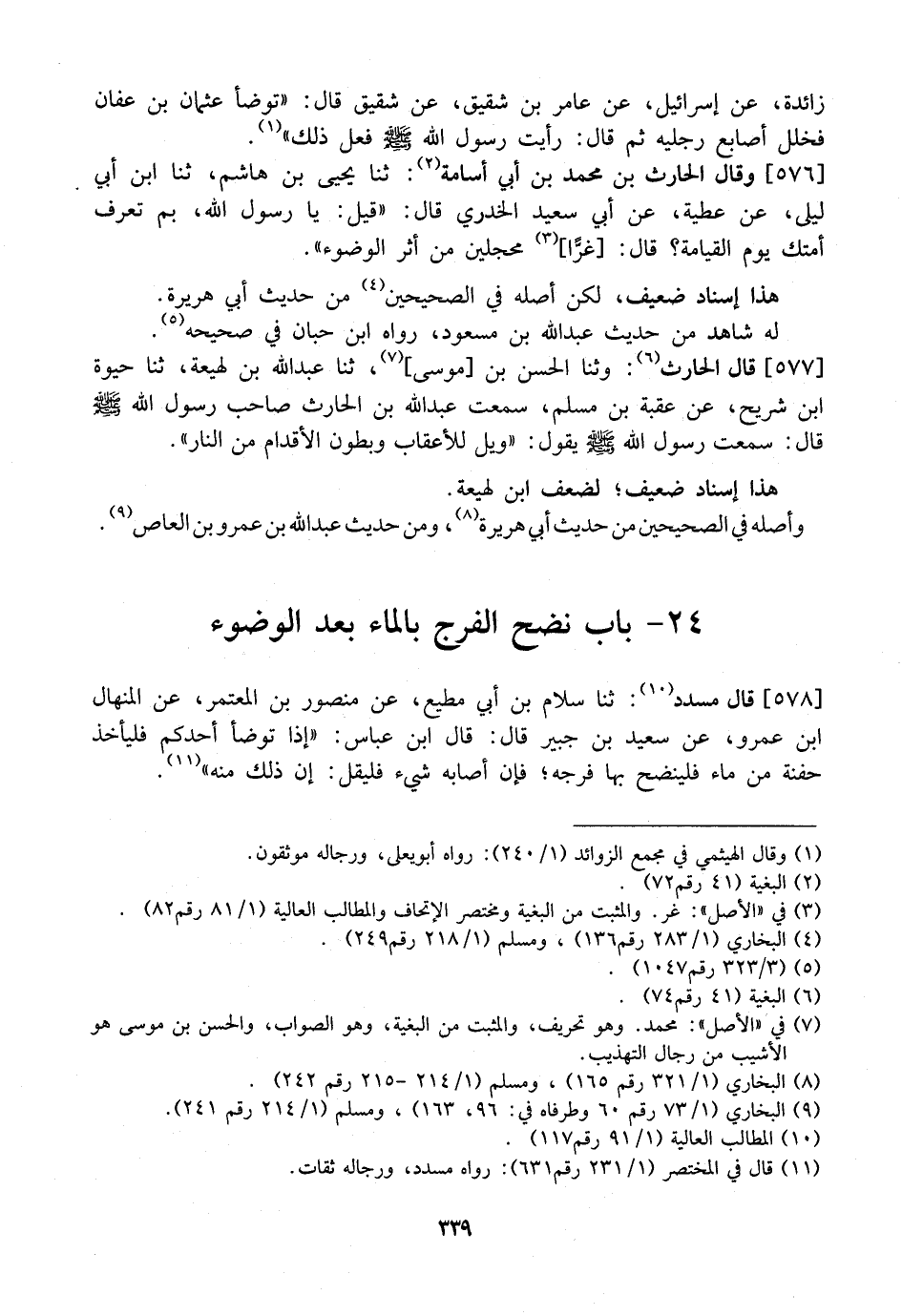 577 - قَالَ الْحَارِثُ: وثنا الْحَسَنُ بْنُ مُوسَى،، ثَنَا عَبْدُ اللَّهِ بْنُ لَهِيعَةَ، ثَنَا حَيْوَةُ بْنُ شُرَيْحٍ، عَنْ عُقْبَةَ بْنِ مُسْلِمٍ، سَمِعْتُ عَبْدَ اللَّهِ بْنَ الْحَارِثِ صَاحِبَ رَسُولِ اللَّهِ - صَلَّى اللَّهُ عَلَيْهِ وَسَلَّمَ - قَالَ: سَمِعْتُ رَسُولَ اللَّهِ - صَلَّى اللَّهُ عَلَيْهِ وَسَلَّمَ - يَقُولُ: "وَيْلٌ لِلْأَعْقَابِ وَبُطُونِ الْأَقْدَامِ مِنَ النَّارِ".