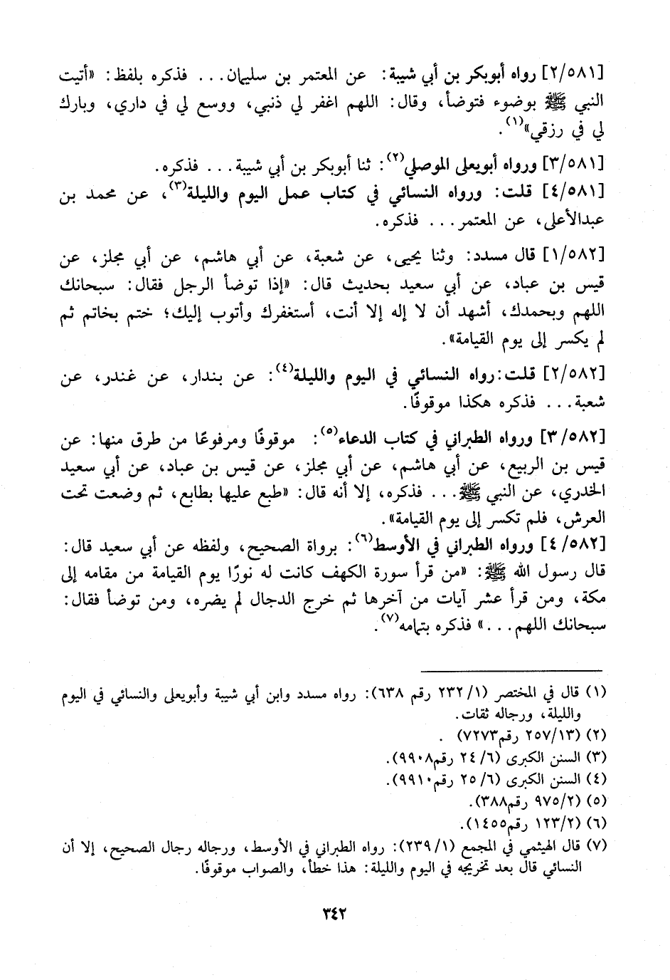 581 / 4 - قُلْتُ: وَرَوَاهُ النَّسَائِيُّ فِي كِتَابِ عَمَلِ الْيَوْمِ وَاللَّيْلَةِ، عَنْ مُحَمَّدِ بْنِ عَبْدِ الأعلى، عن المعتمر ... فَذَكَرَهُ.