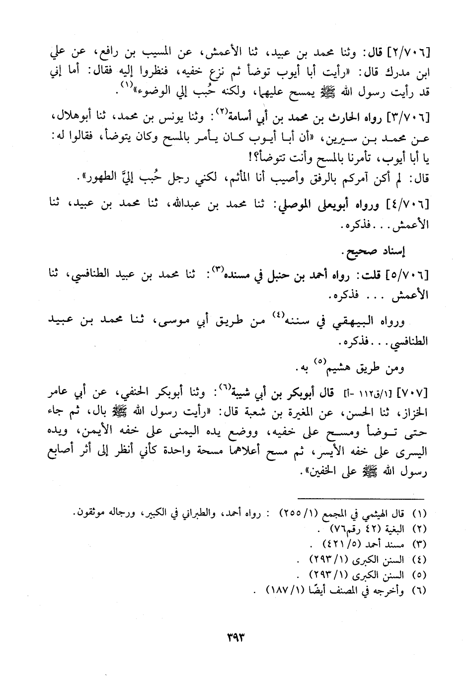 716 / 3 - رَوَاهُ الْحَارِثُ بْنُ مُحَمَّدِ بْنِ أَبِي أُسَامَةَ: وثنا يُونُسُ بْنُ مُحَمَّدٍ، ثَنَا أَبُو هِلَالٍ، عَنْ مُحَمَّدِ بْنِ سِيرِينَ، "أَنَّ أَبَا أَيُّوبَ كَانَ يَأْمُرُ بِالْمَسْحِ وَكَانَ يَتَوَضَّأُ، فَقَالُوا لَهُ: يَا أَبَا أَيُّوبَ، تَأْمُرُنَا بِالْمَسْحِ وَأَنْتَ تَتَوَضَّأُ؟!