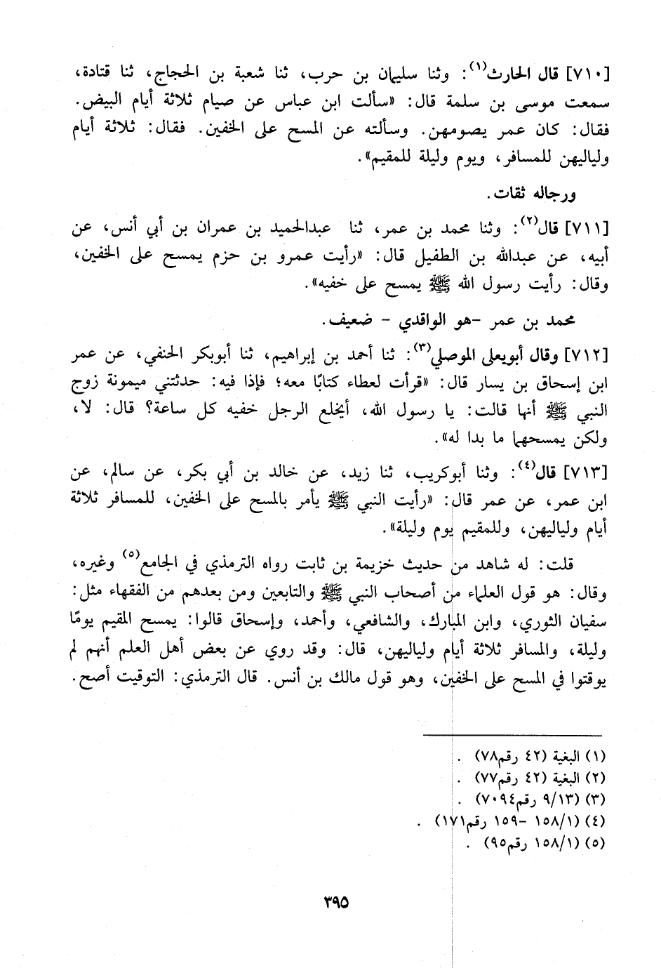 711 - قَالَ: وثنا مُحَمَّدُ بْنُ عُمَرَ، ثَنَا عَبْدُ الْحَمِيدِ بْنُ عِمْرَانَ بْنِ أَبِي أَنَسٍ، عَنْ أَبِيهِ، عَنْ عَبْدِ اللَّهِ بْنِ الطُّفَيْلِ قَالَ: "رَأَيْتُ عَمْرَو بْنَ حَزْمٍ يَمْسَحُ عَلَى الخفين، وقالى: رَأَيْتُ رَسُولَ اللَّهِ - صَلَّى اللَّهُ عَلَيْهِ وَسَلَّمَ - يَمْسَحُ عَلَى خُفَّيْهِ ".