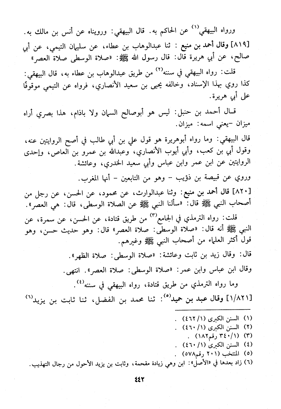 819 - وَقَالَ أَحْمَدُ بْنُ مَنِيعٍ: ثَنَا عَبْدُ الْوَهَّابِ بْنُ عَطَاءٍ، عَنْ سُلَيْمَانَ التَّيْمِيِّ، عَنْ أَبِي صَالِحٍ، عَنْ أَبِي هُرَيْرَةَ قَالَ: قَالَ رَسُولُ اللَّهِ - صَلَّى اللَّهُ عَلَيْهِ وَسَلَّمَ -: "صَلَاةُ الْوُسْطَى صَلَاةُ الْعَصْرِ"