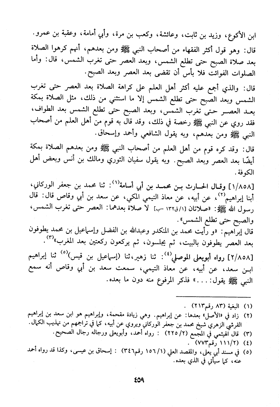 858 / 1 - وَقَالَ الْحَارِثُ بْنُ مُحَمَّدِ بْنِ أَبِي أُسَامَةَ: ثَنَا مُحَمَّدُ بن جعفر الوركاني، أبنا إِبْرَاهِيمُ، عَنْ أَبِيهِ، عَنْ مُعَاذٍ التَّيْمِيِّ الْمَكِّيِّ، عَنْ سَعْدِ بْنِ أَبِي وَقَّاصٍ قَالَ: قَالَ رَسُولُ اللَّهِ - صَلَّى اللَّهُ عَلَيْهِ وَسَلَّمَ -: "صَلَاتَانِ لَا صَلَاةَ بَعْدَهُمَا: الْعَصْرُ حَتَّى تَغْرُبَ الشَّمْسُ، وَالصُّبْحُ حَتَّى تَطْلُعَ الشَّمْسُ ".