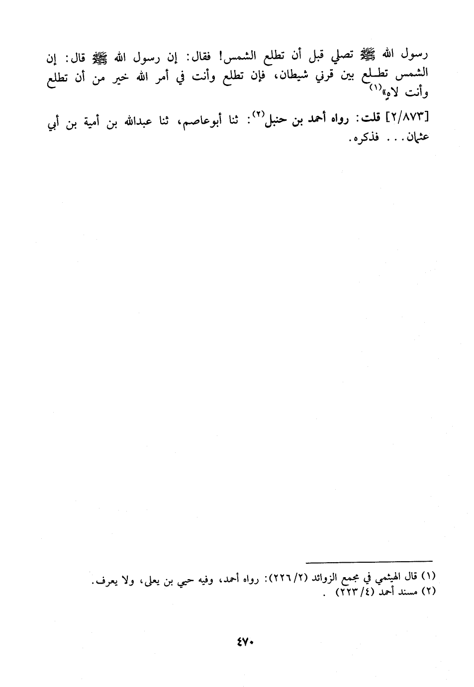 873 / 2 - قُلْتُ: رَوَاهُ أَحْمَدُ بْنُ حَنْبَلٍ: ثَنَا أَبُو عَاصِمٍ، ثَنَا عَبْدُ اللَّهِ بْنُ أُمَيَّةَ بْنِ أَبِي عُثْمَانَ ... فذكره.