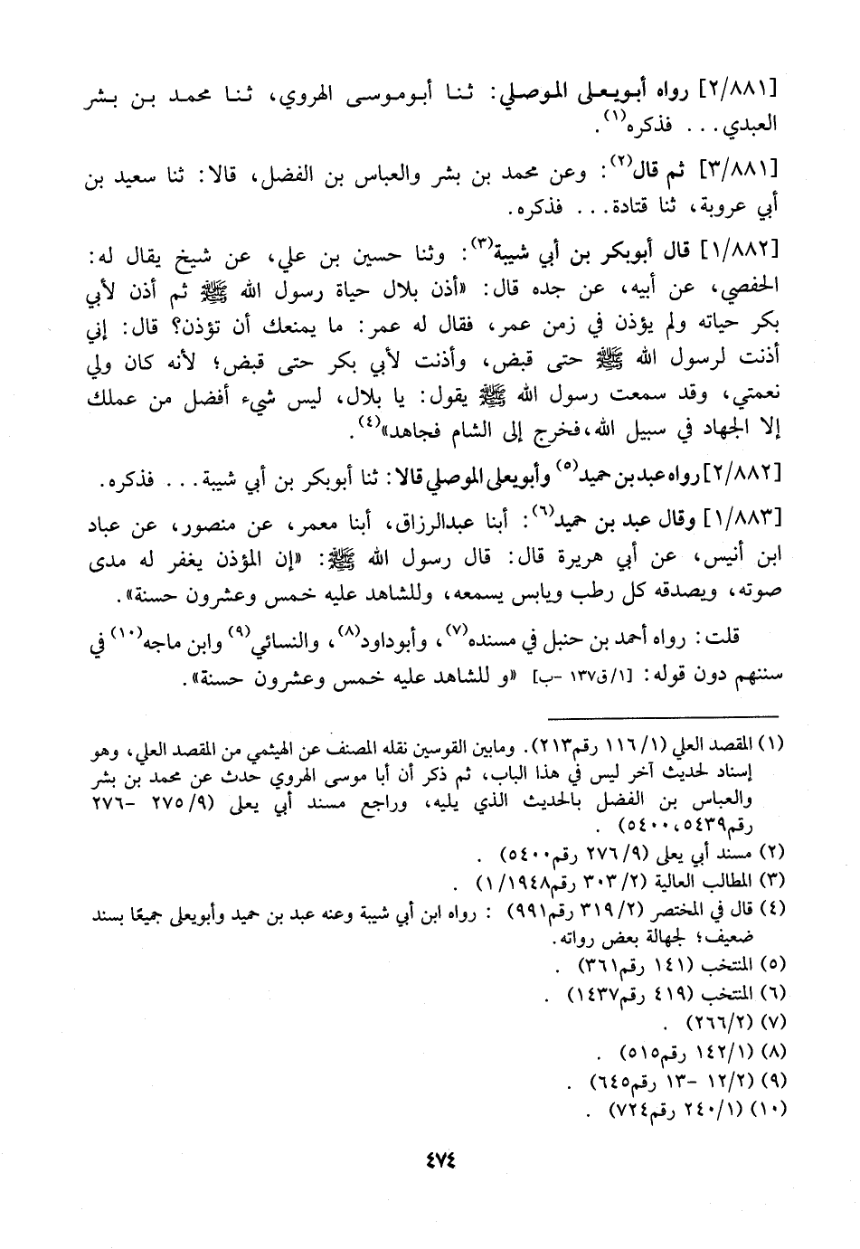 881 / 2 - رَوَاهُ أَبُو يَعْلَى الْمَوْصِلِيُّ: ثَنَا أَبُو مُوسَى الْهَرَوِيُّ، ثَنَا مُحَمَّدُ بْنُ بِشْرٍ الْعَبْدِيُّ ... فذكره.