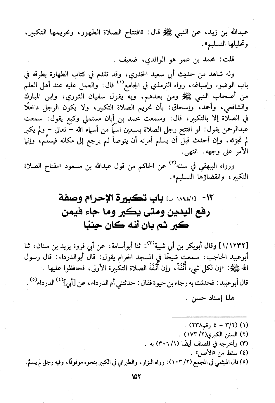 عَبْدِ اللَّهِ بْنِ زَيْدٍ، عَنِ النَّبِيِّ - صَلَّى اللَّهُ عَلَيْهِ وَسَلَّمَ - قَالَ: "افْتِتَاحُ الصَّلَاةِ الطُّهُورُ، وَتَحْرِيمُهَا التَّكْبِيرُ، وَتَحْلِيلُهَا التَّسْلِيمُ.