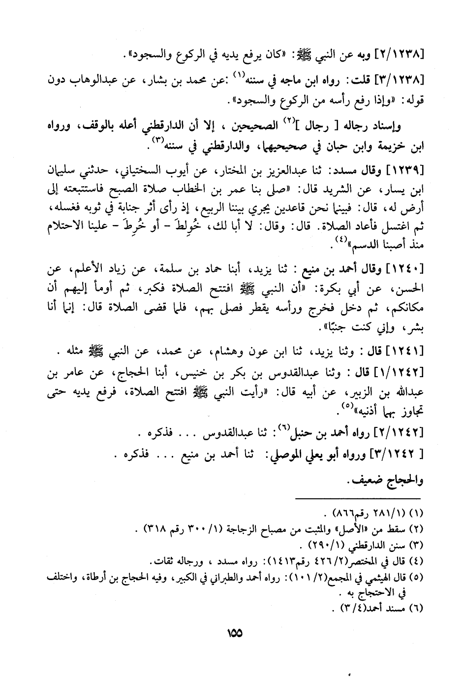1238 / 3 - قُلْتُ: رَوَاهُ ابْنُ مَاجَهْ فِي سُنَنِهِ: عَنْ محمد بْنِ بَشَارٍ، عَنْ عَبْدِ الْوَهَّابِ دُونَ قَوْلِهِ: "وإذا رفع رأسه من الركوع والسجود".