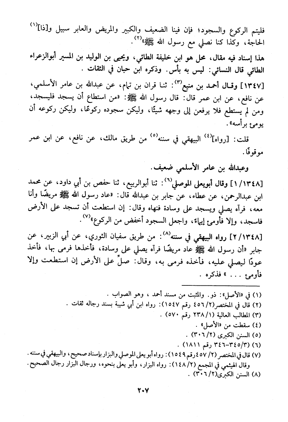 1348 / 1 - وَقَالَ أَبُو يَعْلَى الْمَوْصِلِيُّ: ثَنَا أَبُو الرَّبِيعِ، ثَنَا حفص بن أبي داود، عن محمد ابن عَبْدِ الرَّحْمَنِ، عَنْ عَطَاءٍ، عَنْ جَابِرِ بْنِ عَبْدِ اللَّهِ قَالَ: "عَادَ رَسُولُ اللَّهِ - صَلَّى اللَّهُ عَلَيْهِ وَسَلَّمَ - مَرِيضًا وَأَنَا مَعَهُ، فَرَآهُ يُصَلِّي وَيَسْجُدُ عَلَى وِسَادَةٍ فَنَهَاهُ وَقَالَ: إِنِ اسْتَطَعْتَ أَنْ تَسْجُدَ عَلَى الْأَرْضِ فَاسْجُدْ، وَإِلَّا فَأَوْمِئْ إِيمَاءً، وَاجْعَلِ السُّجُودَ أَخْفَضَ مِنَ الرُّكُوعِ ".