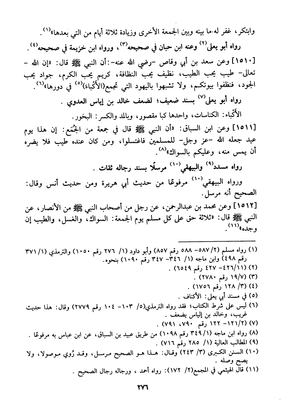 1512 - وَعَنْ مُحَمَّدُ بْنُ عَبْدِ الرَّحْمَنِ، عَنْ رَجُلٍ مِنْ أَصْحَابِ النَّبِيِّ - صَلَّى اللَّهُ عَلَيْهِ وَسَلَّمَ - مِنْ الْأَنْصَارِ، عَنِ النَّبِيِّ - صَلَّى اللَّهُ عَلَيْهِ وَسَلَّمَ - قَالَ: "ثَلَاثَةٌ حَقٌّ عَلَى كُلِّ مُسْلِمٍ يَوْمَ الْجُمُعَةِ: السِّوَاكُ، وَالْغُسْلُ، وَالطِّيبُ إِنْ وجده ".
