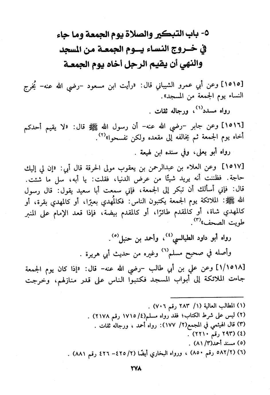 1515 - وَعَنْ أَبِي عَمْروٍ الشَّيْبَانِيِّ قَالَ: "رَأَيْتُ ابْنَ مَسْعُودٍ- رَضِيَ اللَّهُ عَنْهُ- يُخرج النِّسَاءَ يَوْمَ الْجُمُعَةِ مِنَ الْمَسْجِدِ".