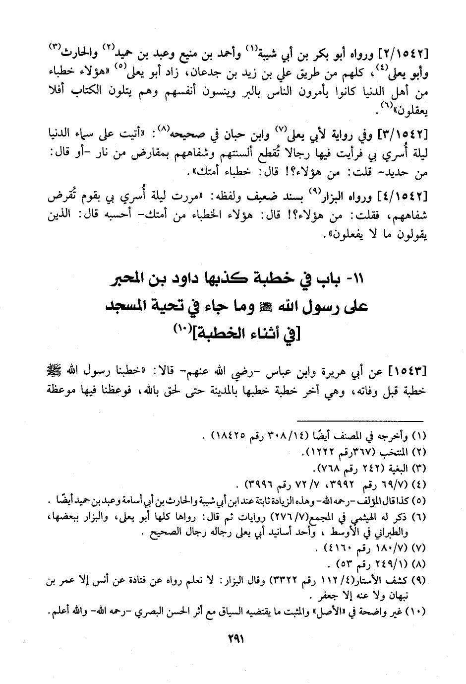 12- بَابٌ فِي خُطْبَةٍ كَذَّبَهَا دَاوُدُ بْنُ الْمَحْبَرِ عَلَى رَسُولِ اللَّهِ - صَلَّى اللَّهُ عَلَيْهِ وَسَلَّمَ - وما جاء في تحية المسجد في أثناء الخطبة