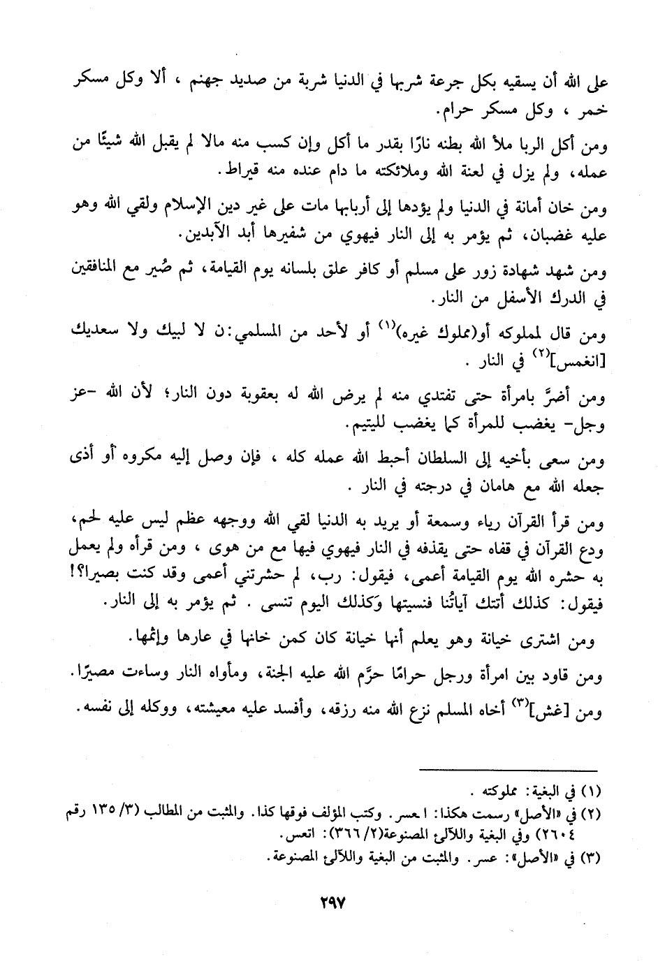 وَمَنْ خَانَ أَمَانَةً فِي الدُّنْيَا وَلَمْ يُؤَدِّهَا إِلَى أَرْبَابِهَا مَاتَ عَلَى غَيْرِ دِينِ الْإِسْلَامِ وَلَقِيَ اللَّهَ وَهُوَ عَلَيْهِ غَضْبَانُ، ثُمَّ يُؤْمَرُ بِهِ إِلَى النَّارِ فَيَهْوِي مِنْ شَفِيرِهَا أَبَدَ الاَبدين.