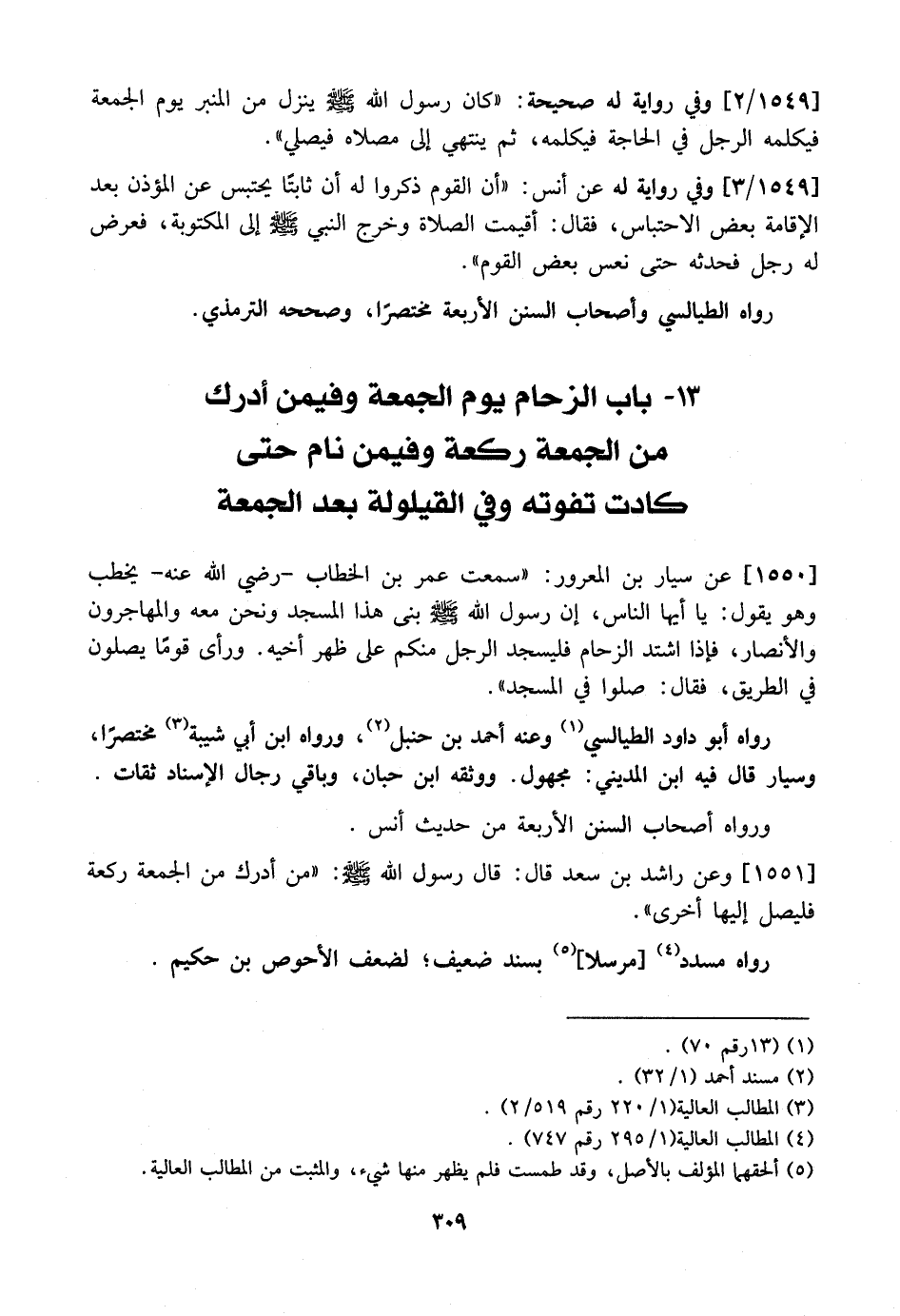 1551 - وَعَنْ رَاشِدِ بْنِ سَعْدٍ قَالَ: قَالَ رَسُولُ اللَّهِ - صَلَّى اللَّهُ عَلَيْهِ وَسَلَّمَ -: ((مَنْ أَدْرَكَ مِنَ الْجُمُعَةِ رَكْعَةً فَلْيُصَلِّ إليها أخرى".