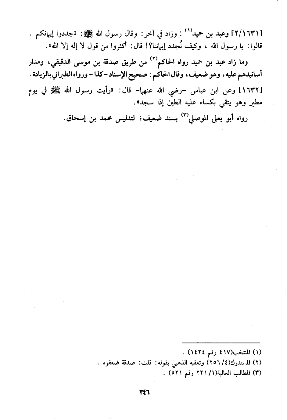 1631 / 2 - وعبد بن حميد: وزاد في آخر: وَقَالَ رَسُولُ اللَّهِ - صَلَّى اللَّهُ عَلَيْهِ وَسَلَّمَ -: "جَدِّدُوا إِيمَانَكُمْ. قَالُوا: يَا رَسُولَ اللَّهِ، وَكَيْفَ نُجدد إِيمَانَنَا؟ قَالَ: أَكْثِرُوا مِنْ قَوْلِ لَا إله إلا الله ".